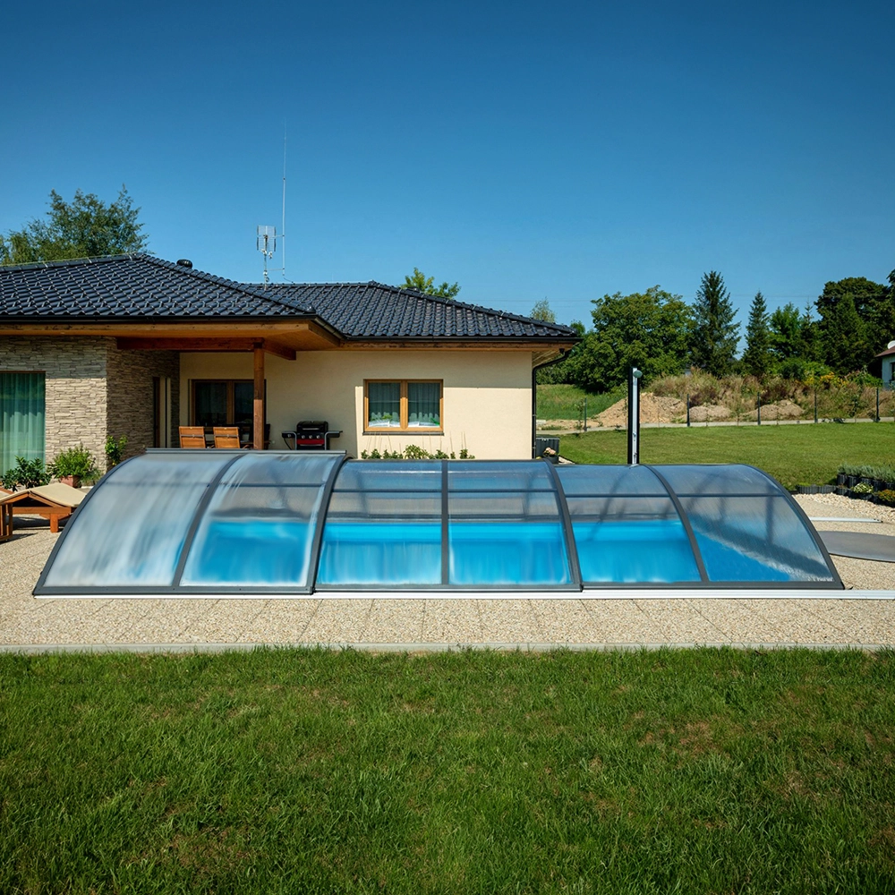Le classique : abri de piscine en version polycarbonate/double plaque alvéolaire 8mm (PC8).