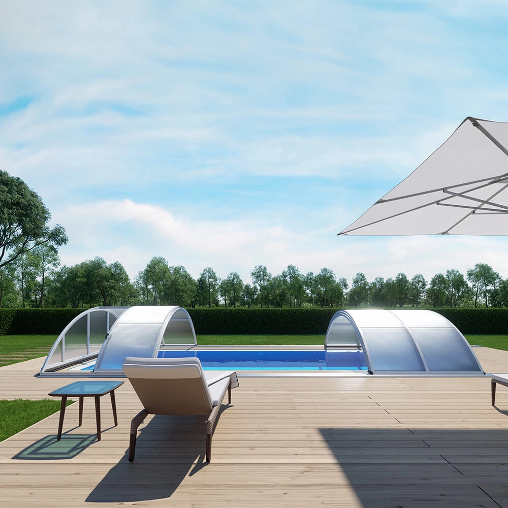 L'abri de piscine Albixon AIR à double panneaux alvéolaires vous offre le meilleur rapport qualité/prix du marché. Cet abri haut de gamme est soit prémonté et rapidement installable, soit disponible en kit économique "In the Box" pour le monter soi-même.