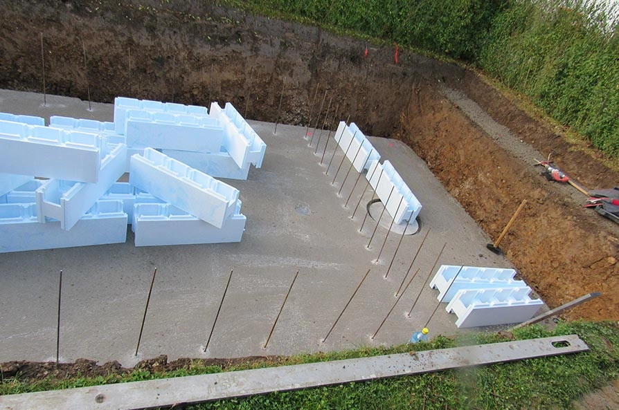 - Installer les blocs de polystyrène ou les éléments de construction