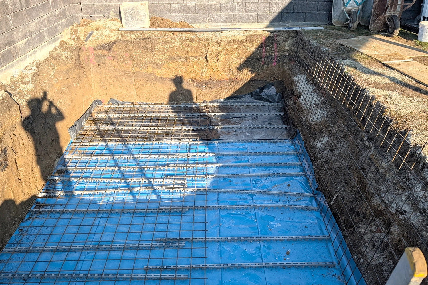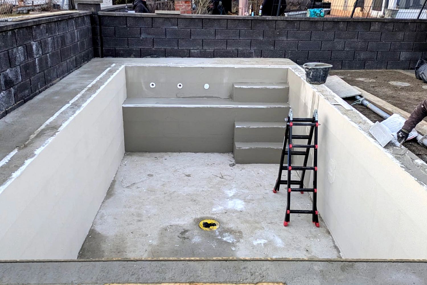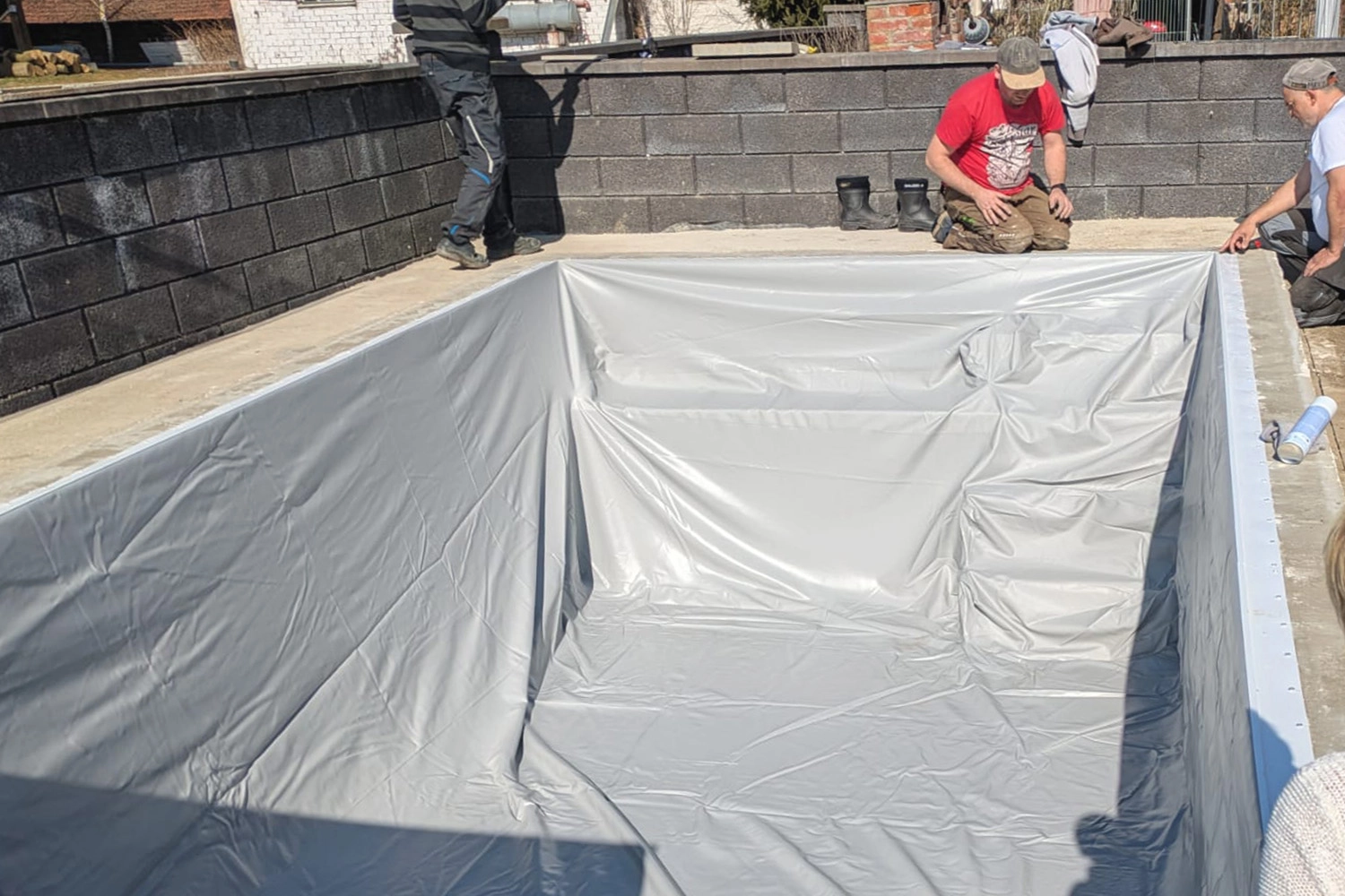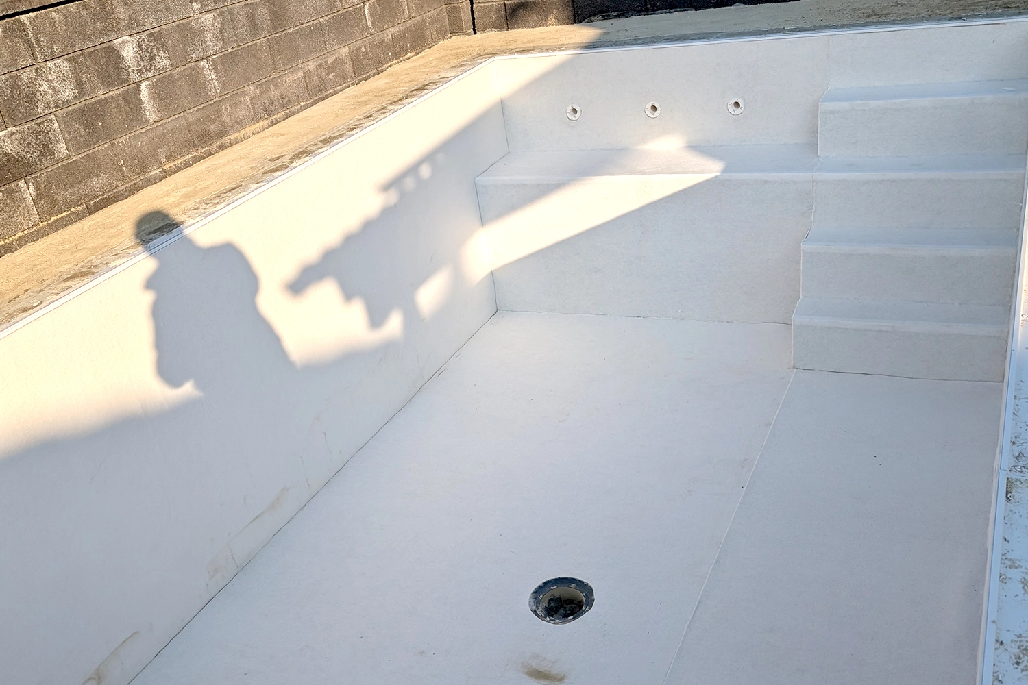 La pose du liner, notamment à cause de l’escalier avec la plage