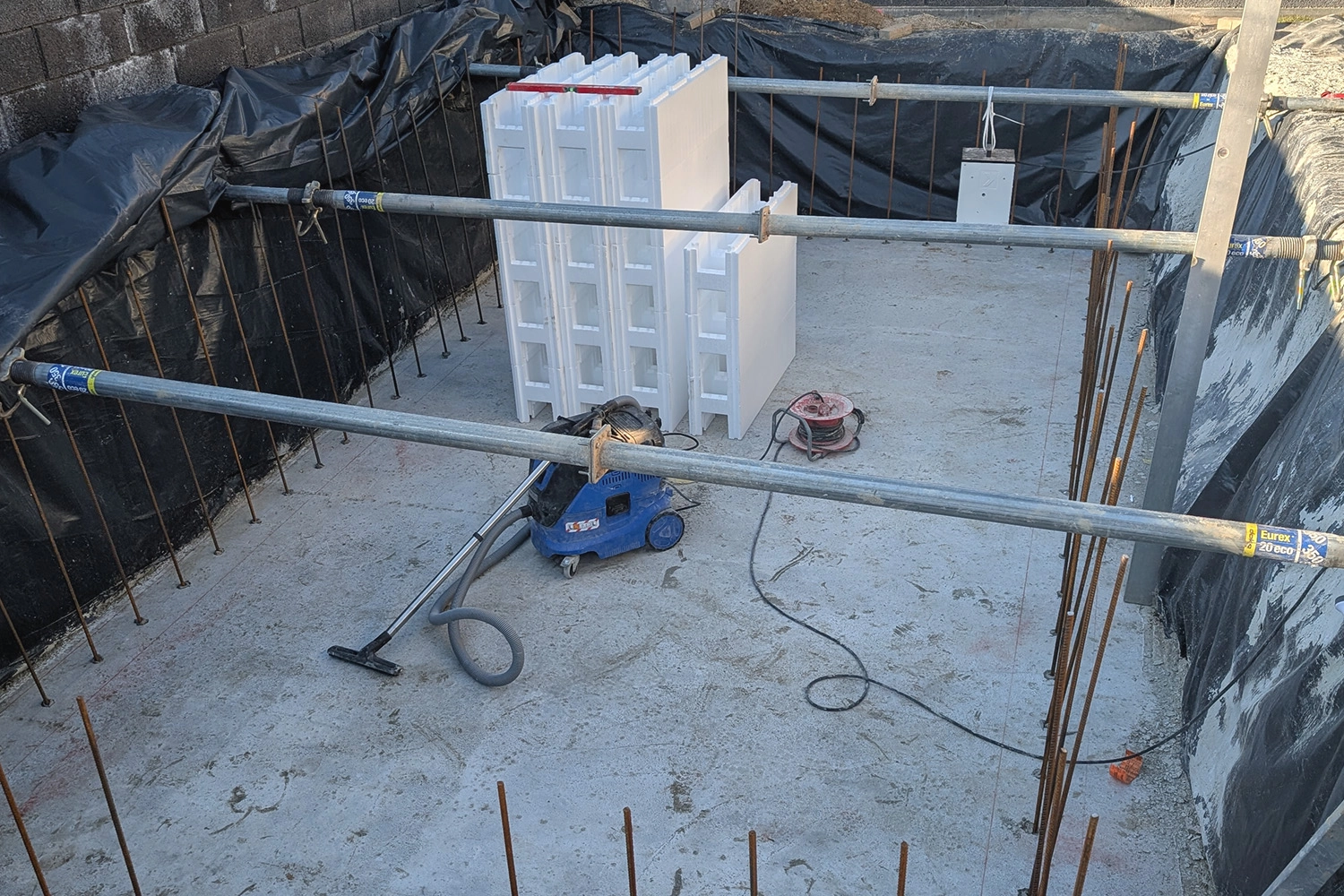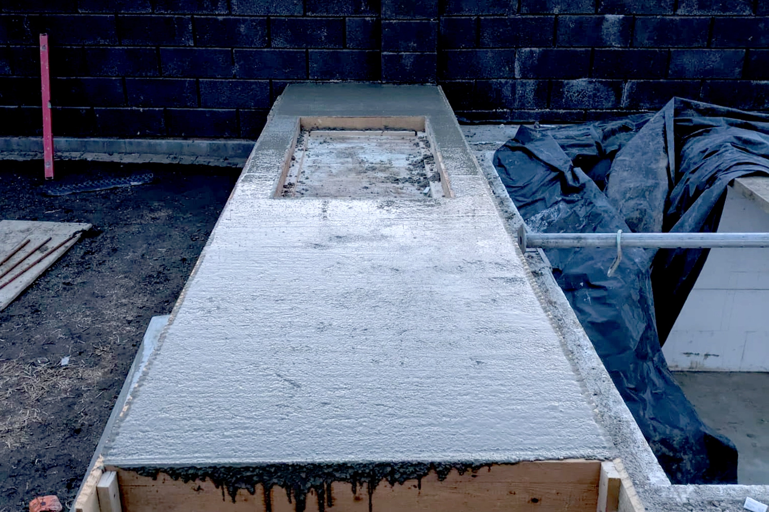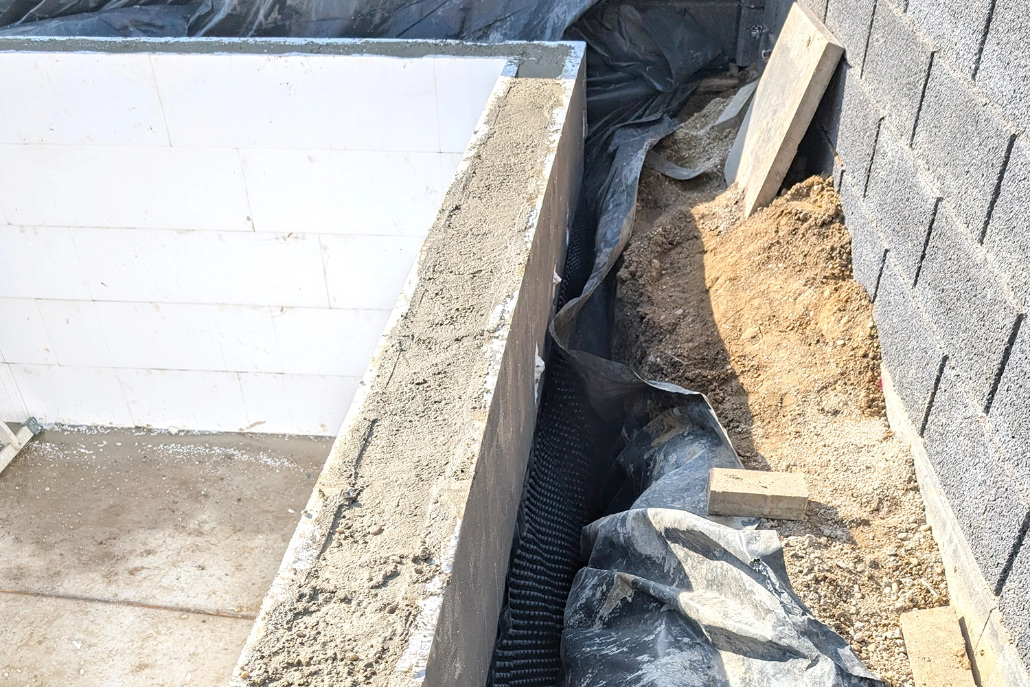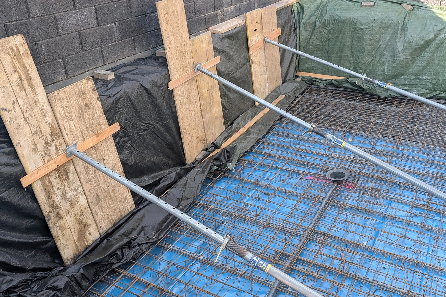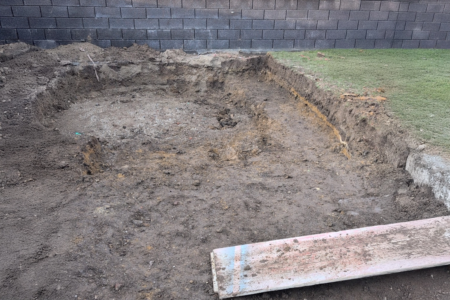 La pose du liner, notamment à cause de l’escalier avec la plage