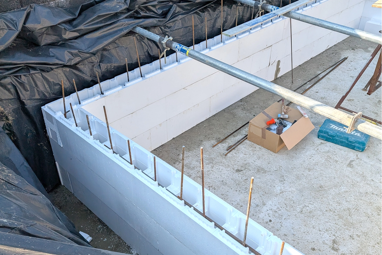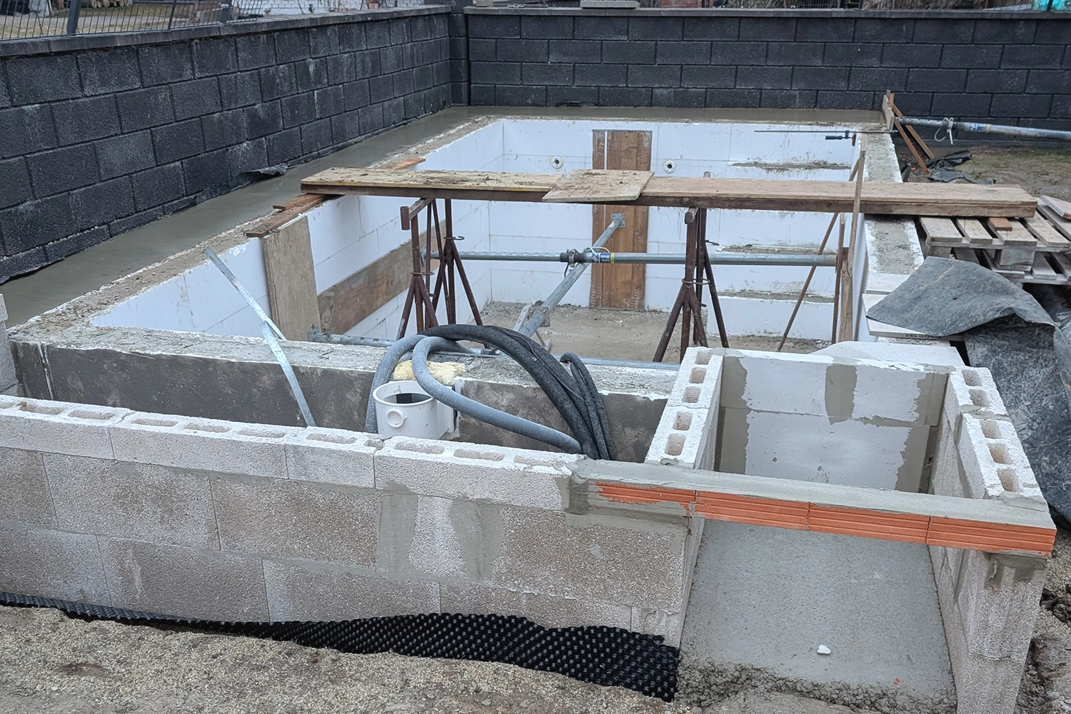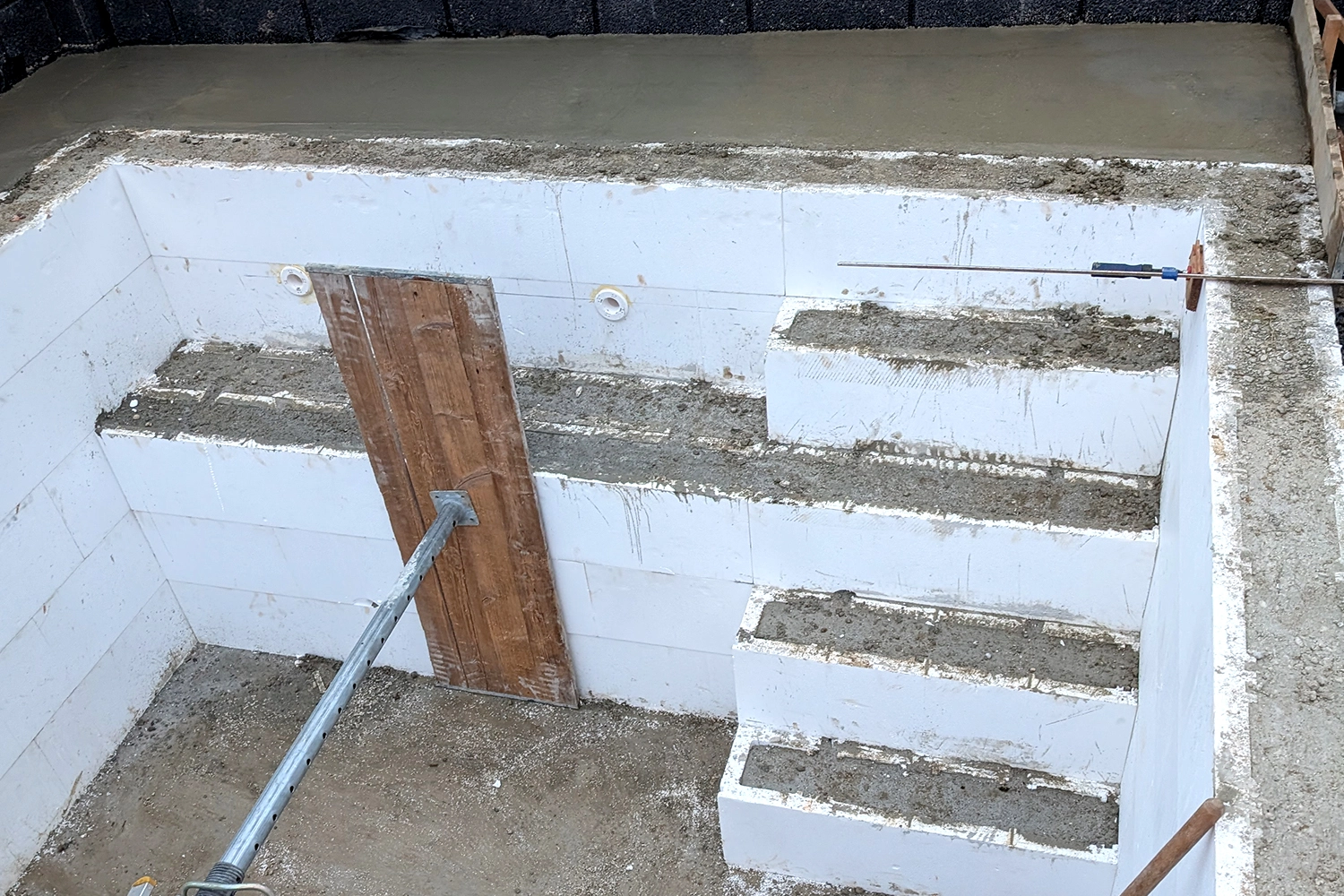 Piscine en polystyrène avec escalier et plage de la famille E., Ergoldsbach