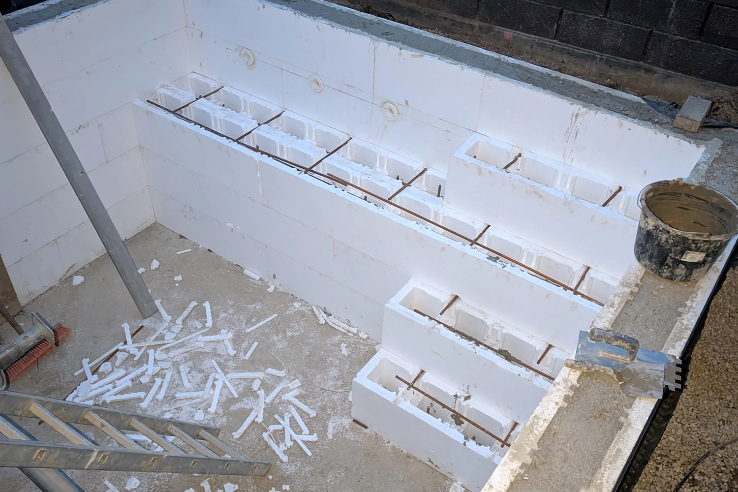 Piscine en polystyrène, 1000 x 400 x 120 cm, kit de base avec escalier d'angle à gauche