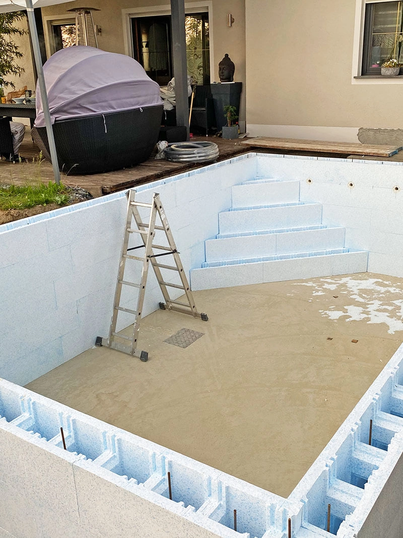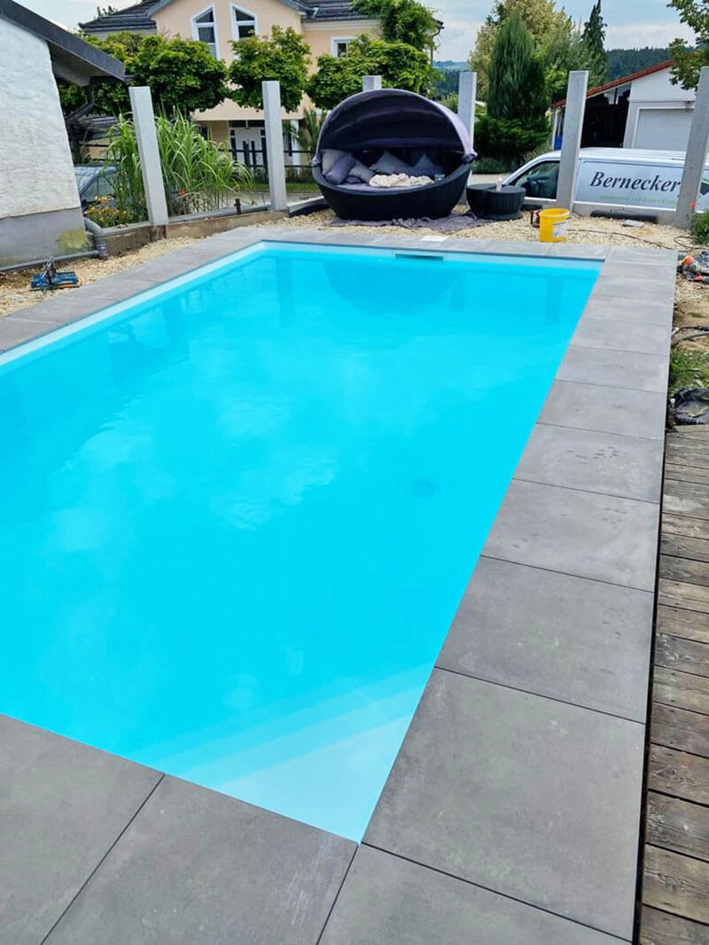 Piscine en polystyrène avec escalier d'angle de la famille A., Salzweg