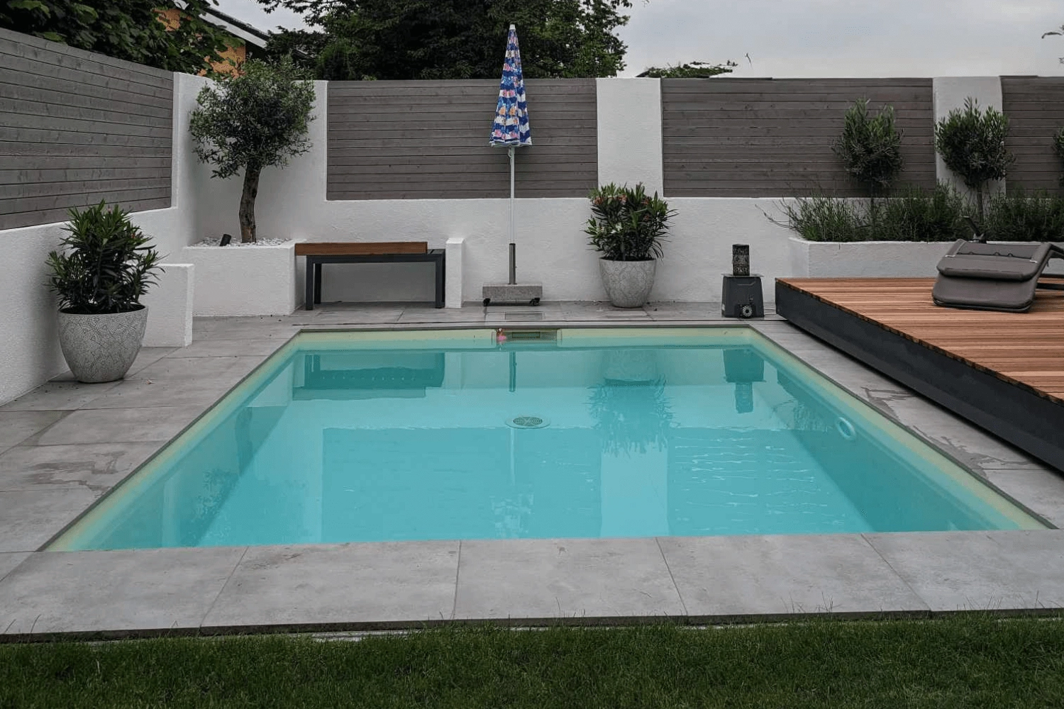 Piscine en polystyrène avec escalier et plage de la famille B., Freiburg im Breisgau