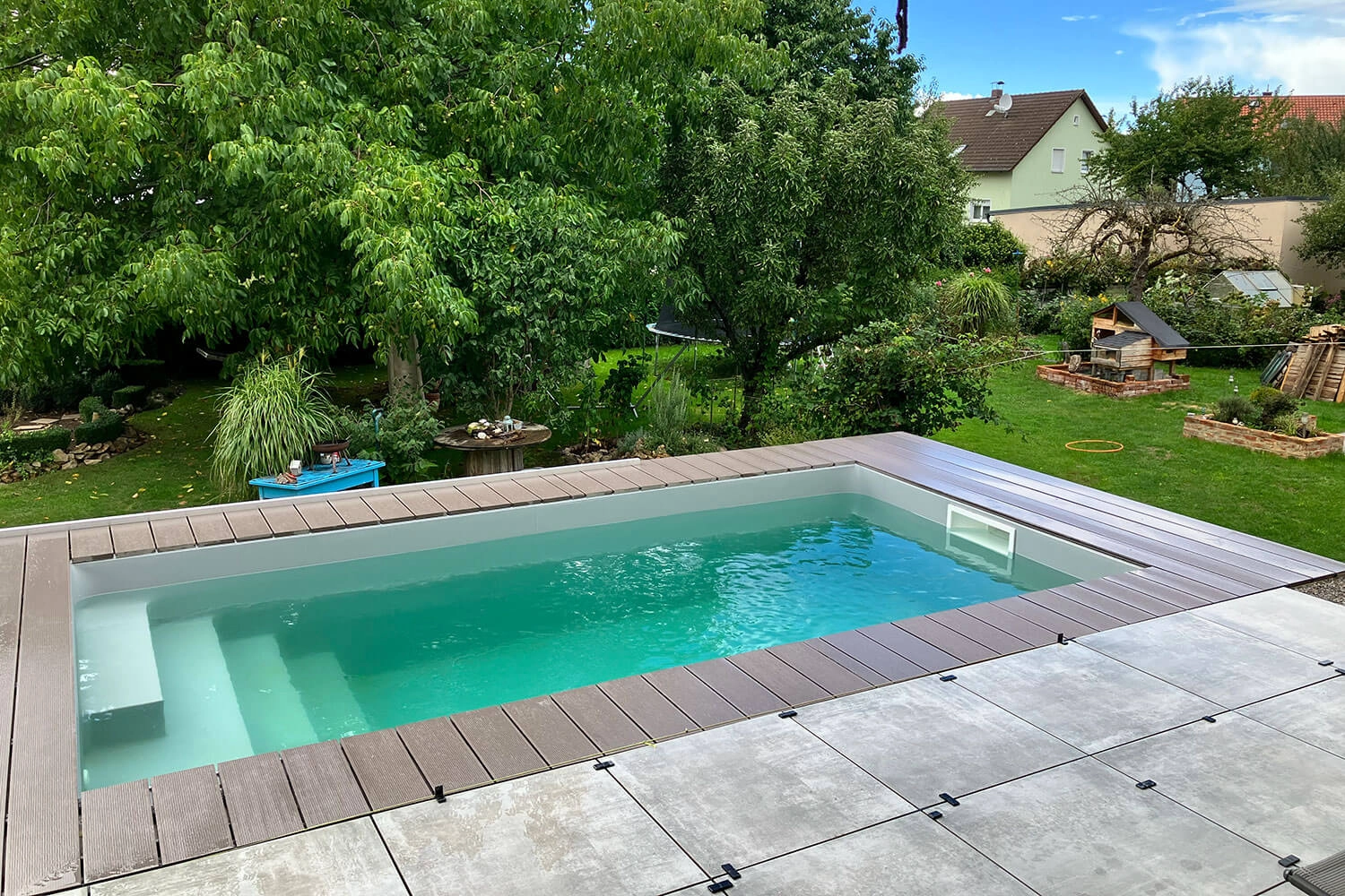 Nous voulions embellir notre jardin et avoir une nouvelle possibilité de nous rafraîchir en été — bien sûr, les enfants doivent aussi s’amuser.