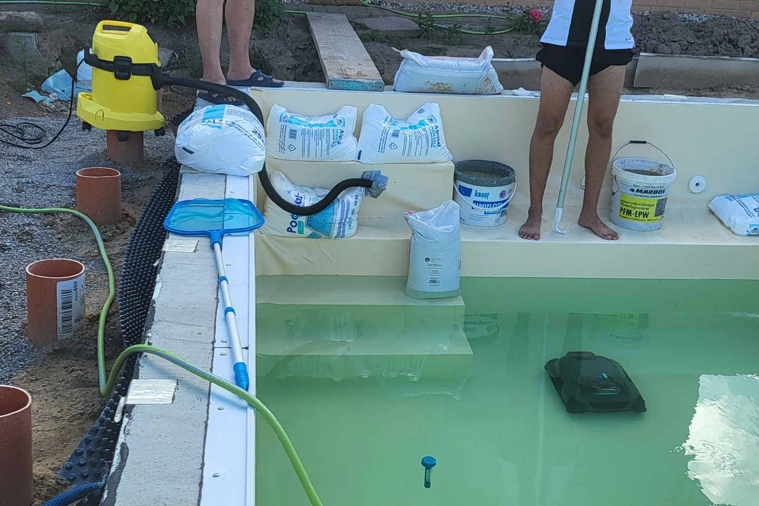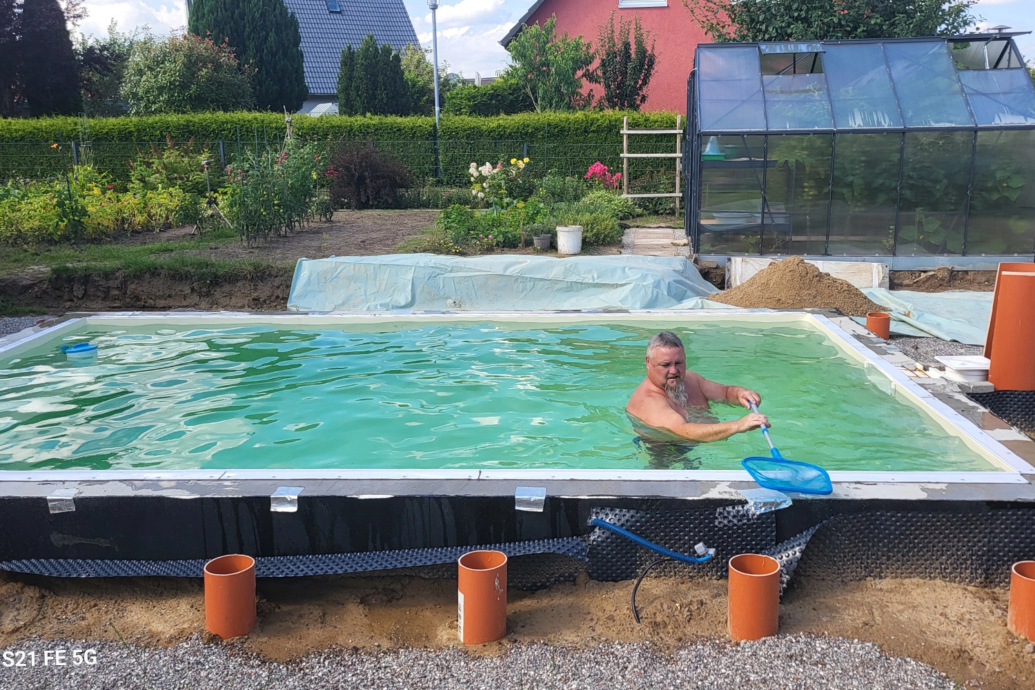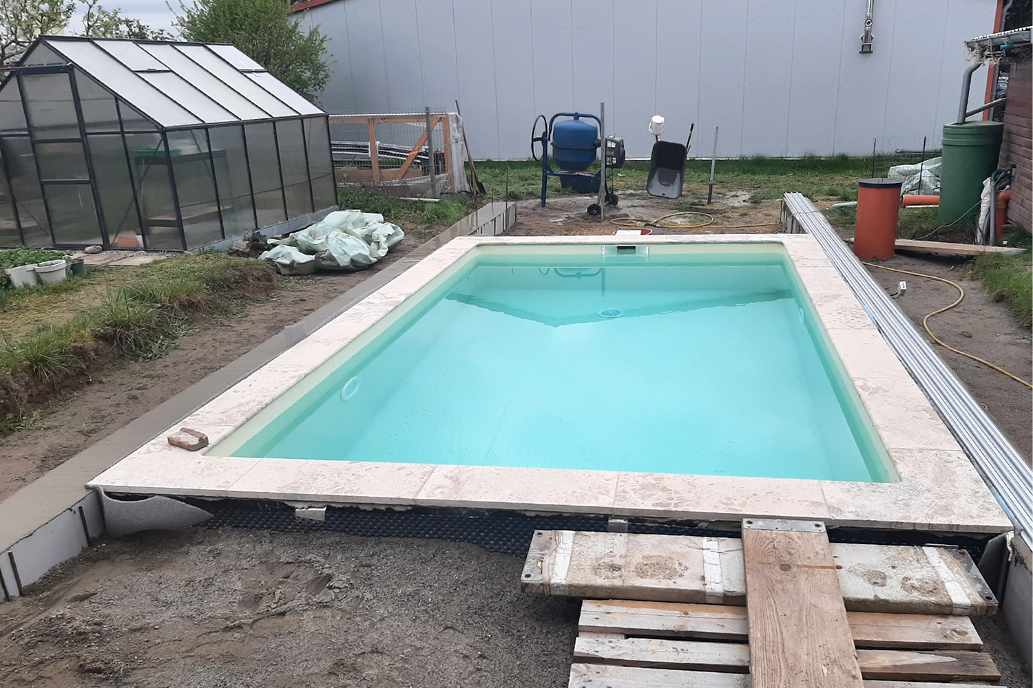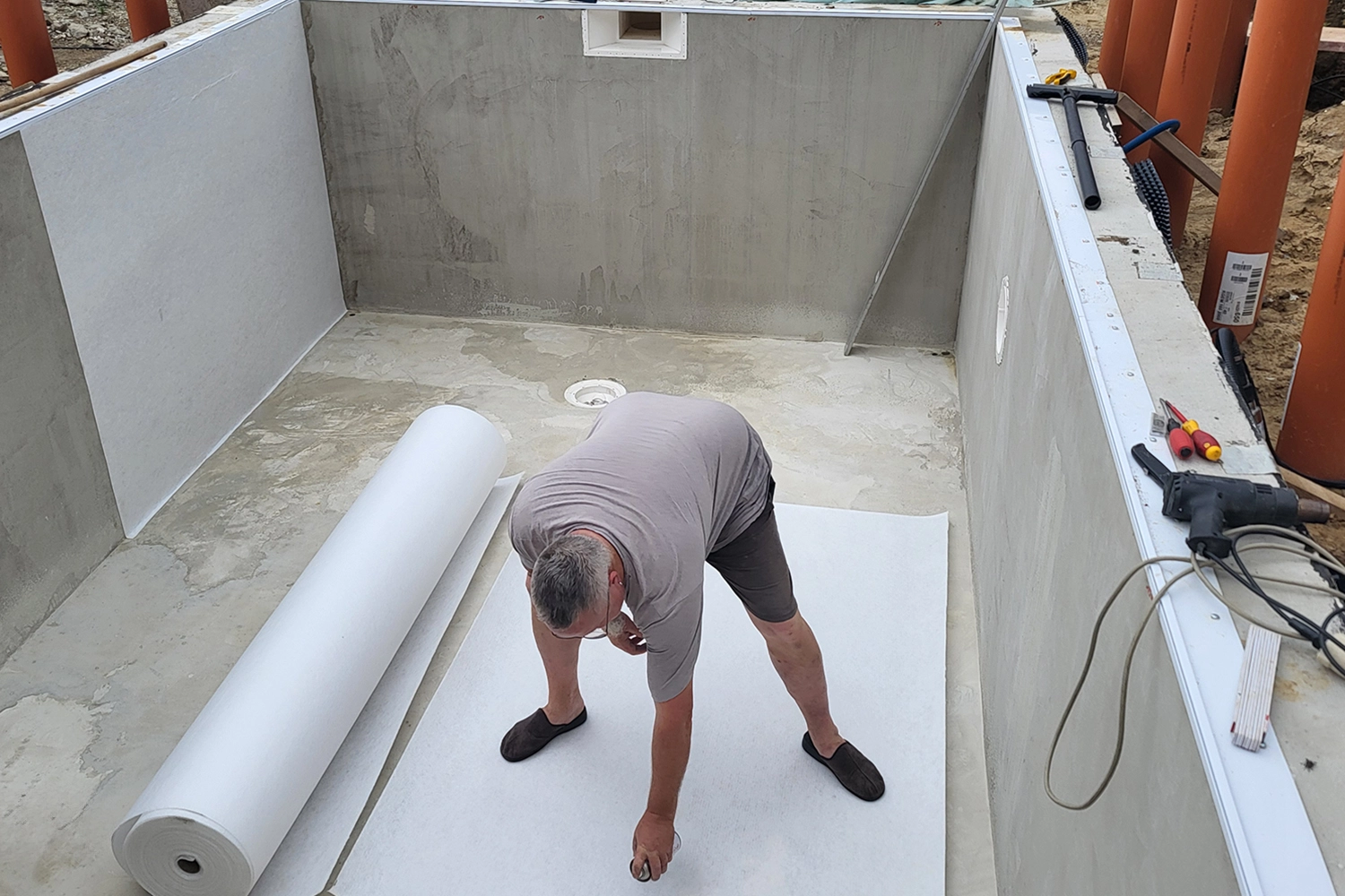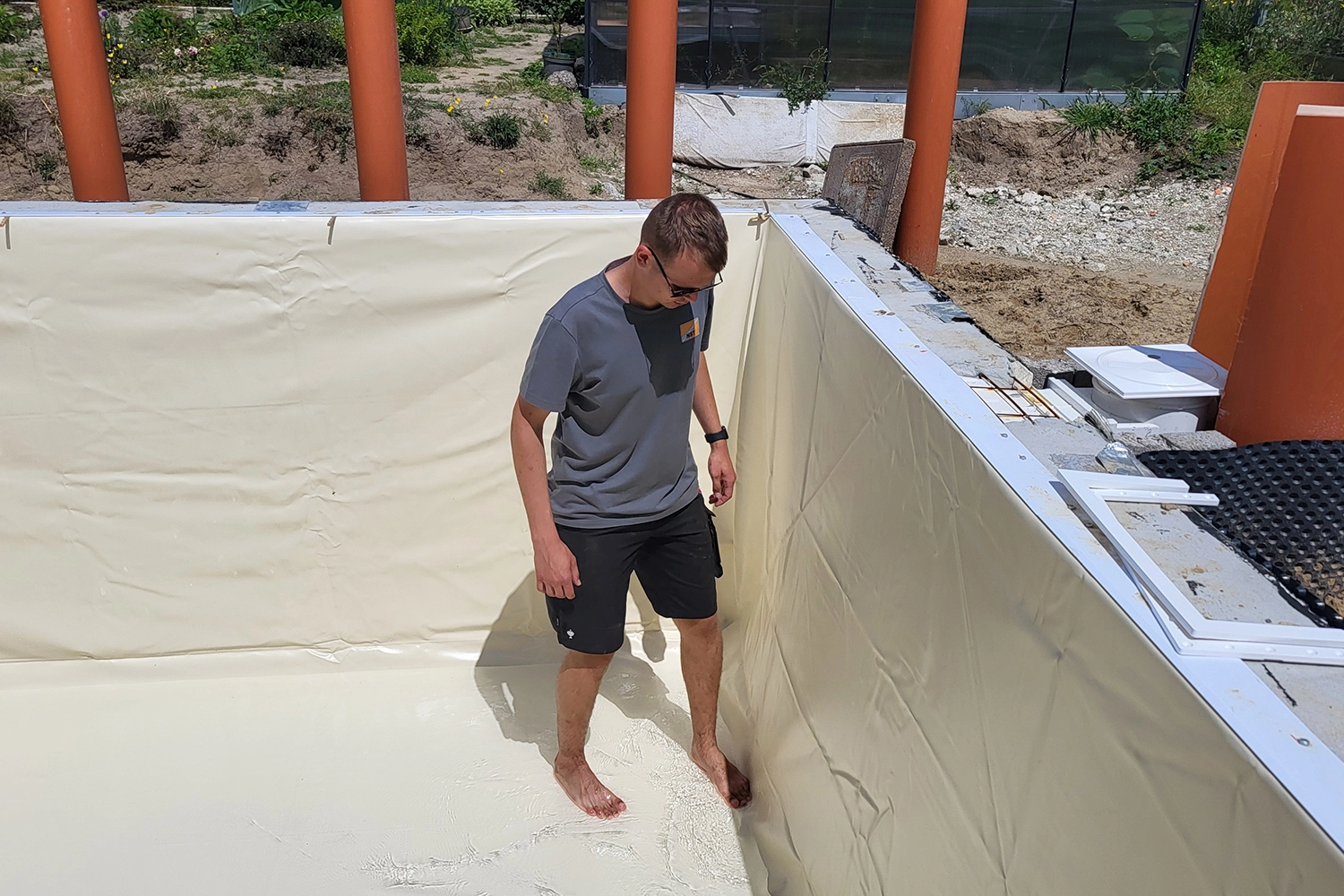 Le liner s’est posée étonnamment facilement. Cependant, dans les coins, il faut faire très attention qu’elle ne se déplace pas sous la pression.