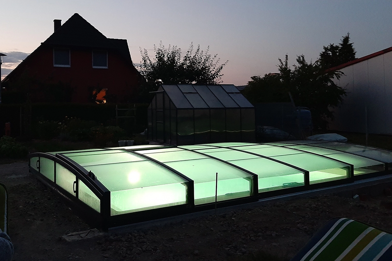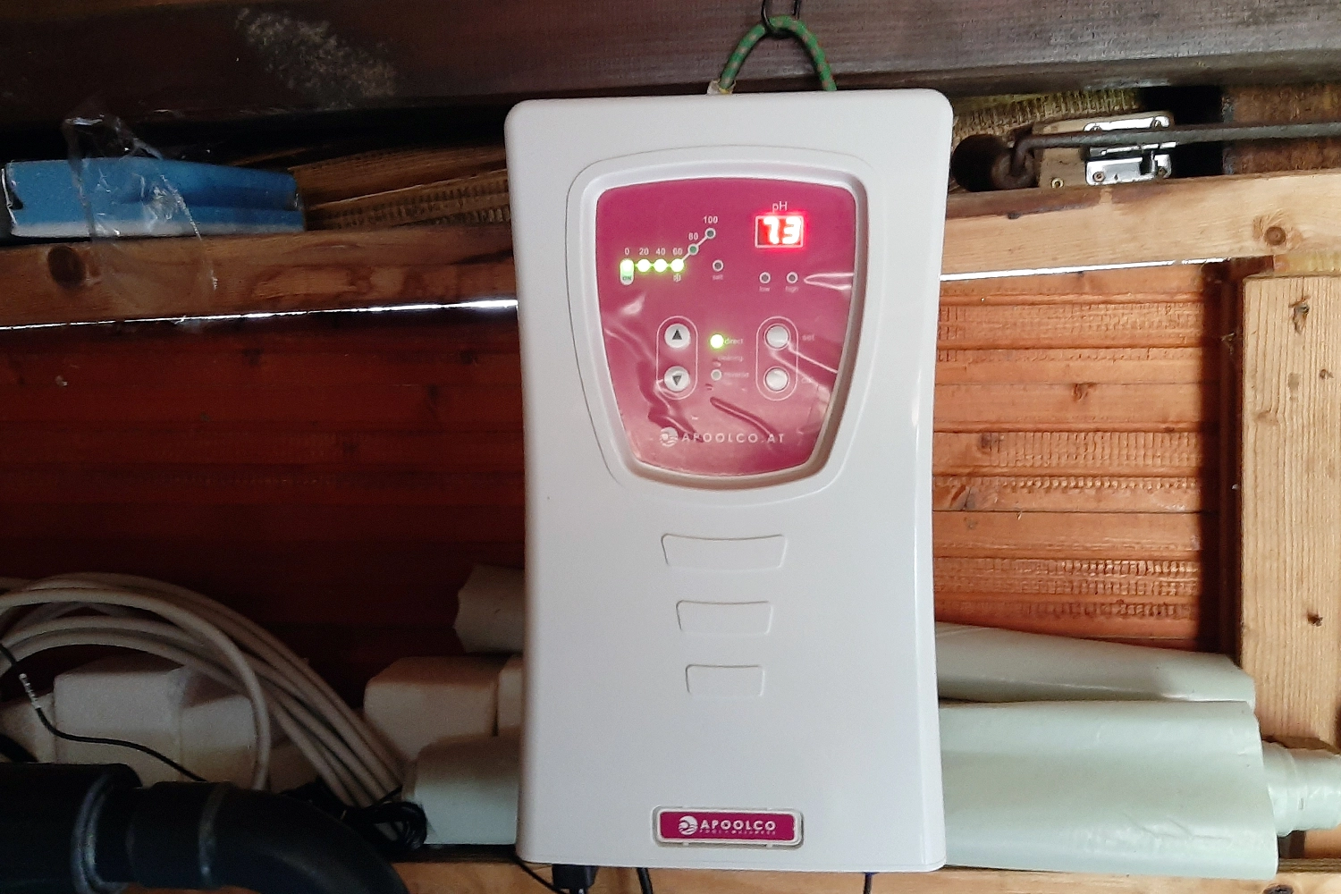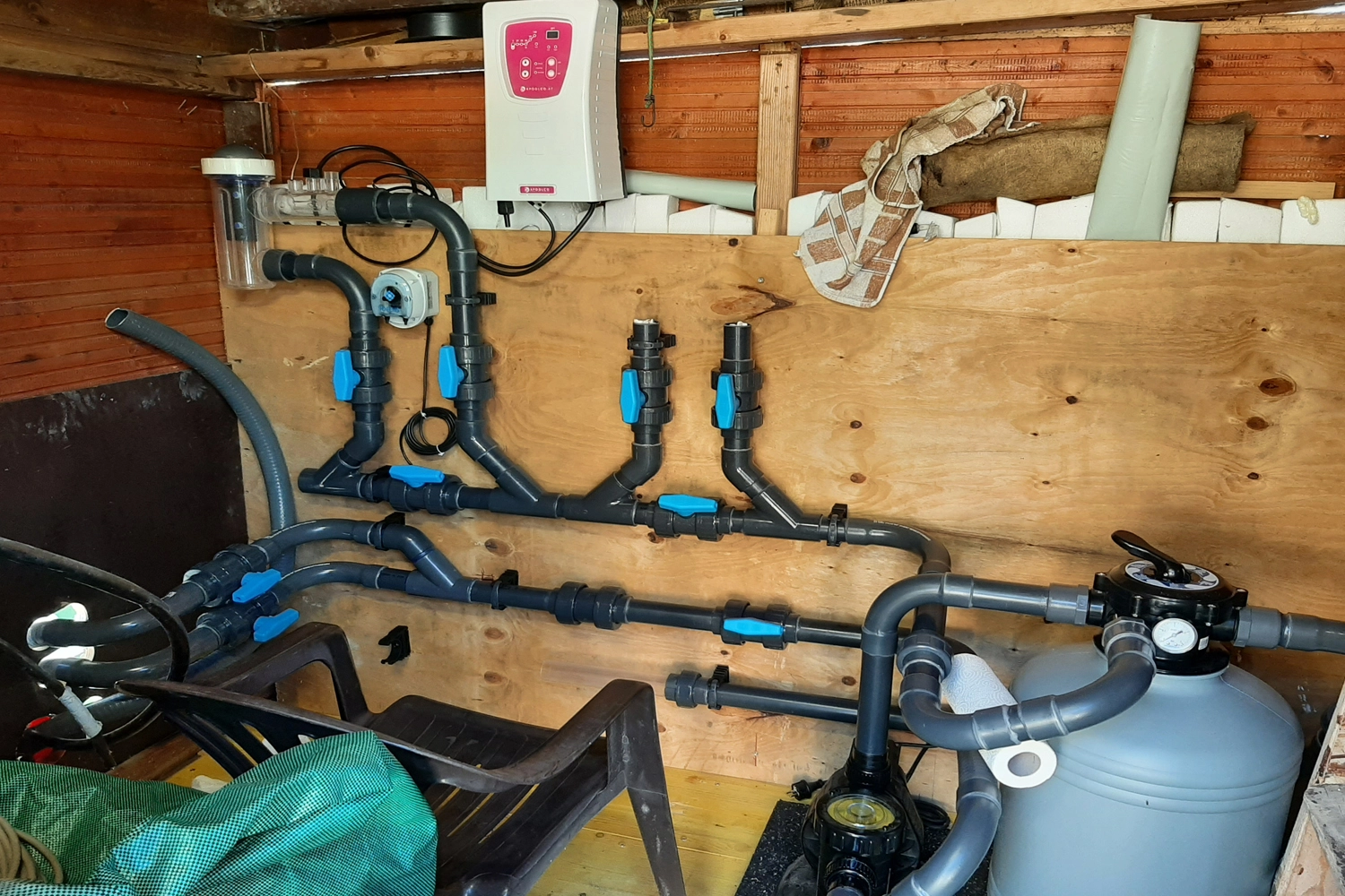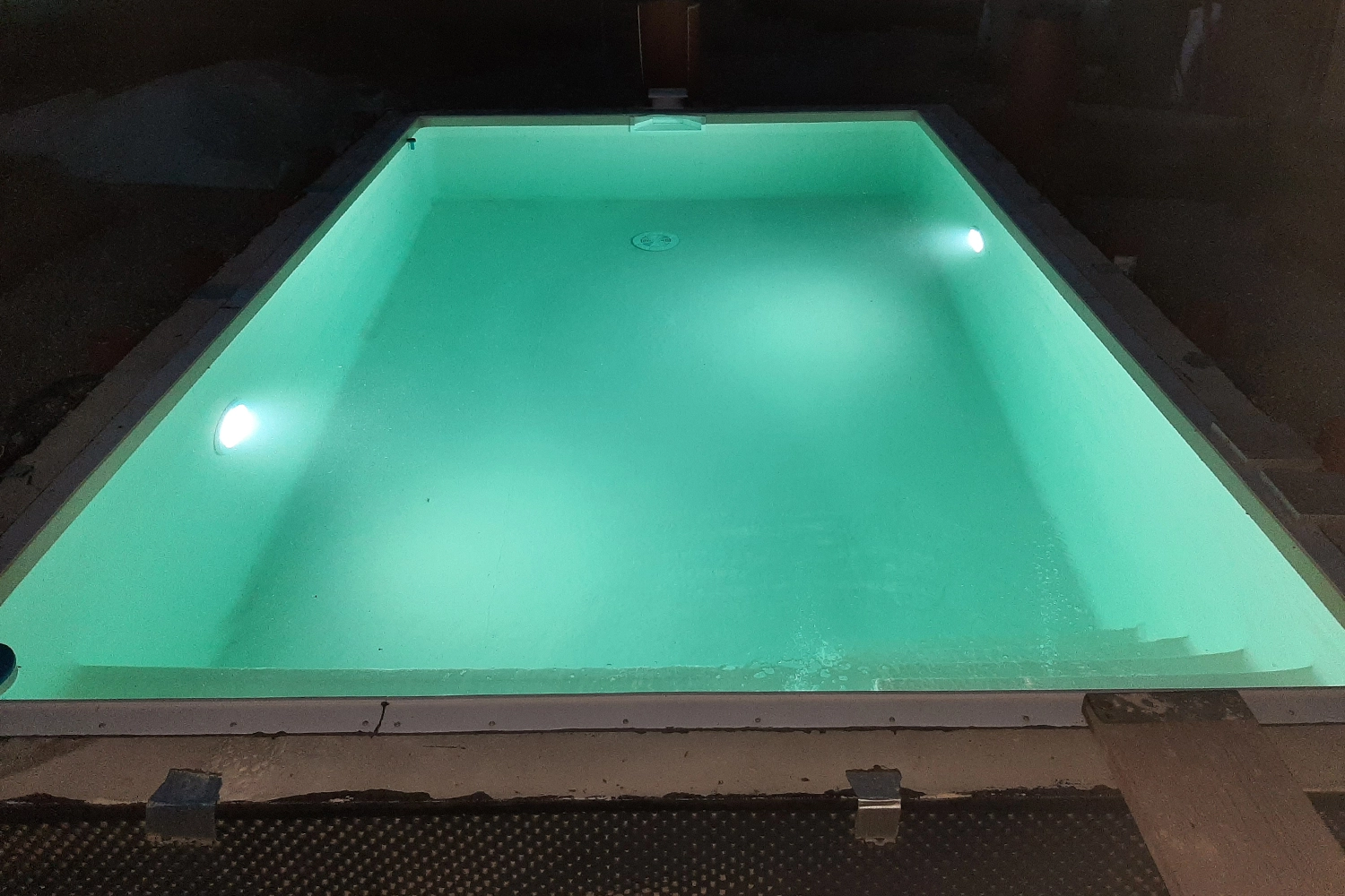Nous avons équipé notre piscine d’un électrolyseur de sel et de projecteurs pour nager la nuit.