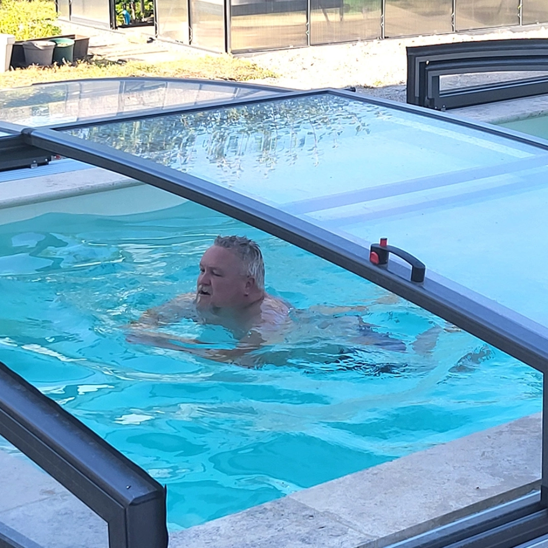 Les personnes ne sachant pas nager ne sont pas autorisées à entrer dans la piscine. Comme la couverture est verrouillable, cela ne pose aucun problème.