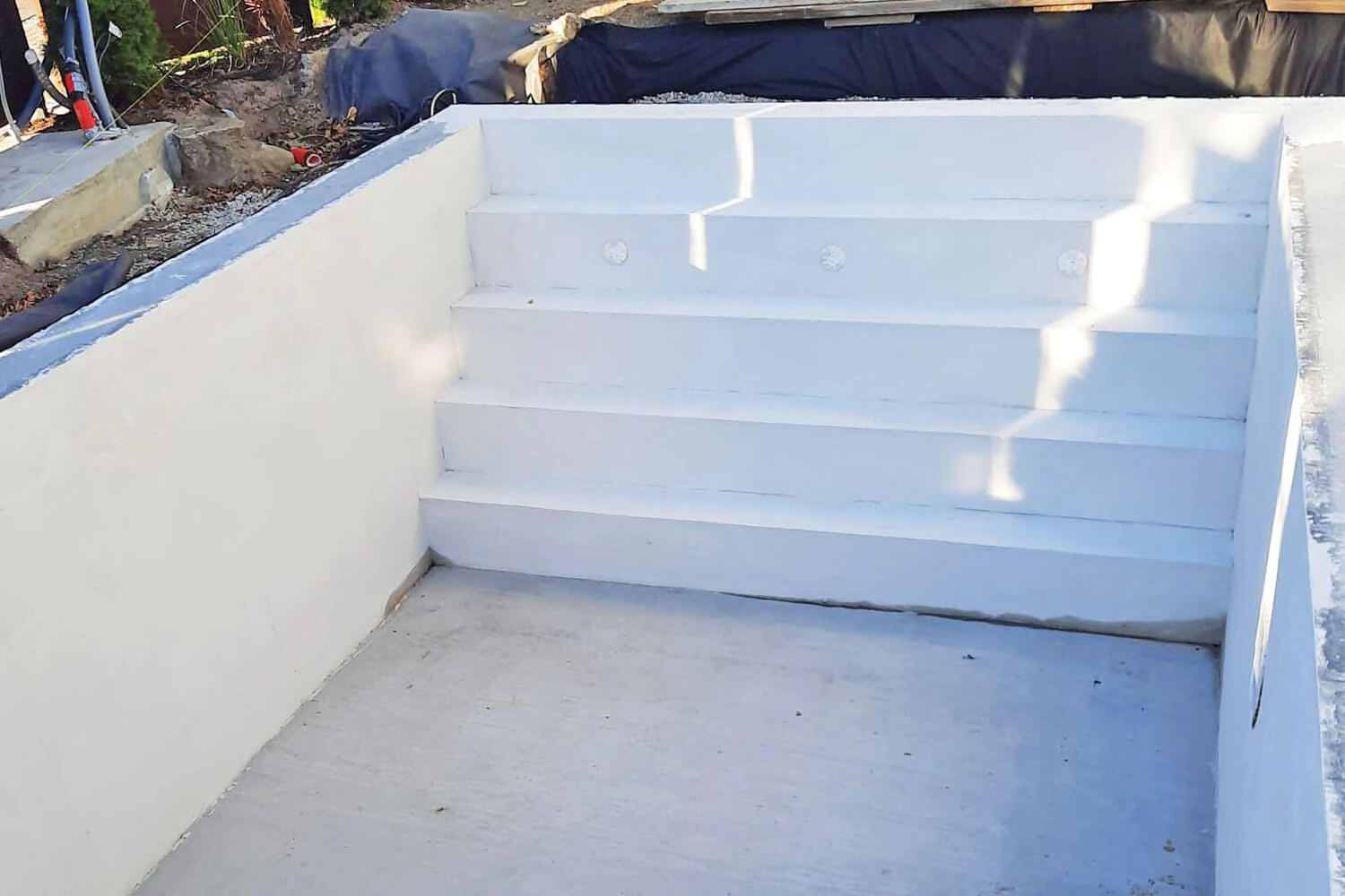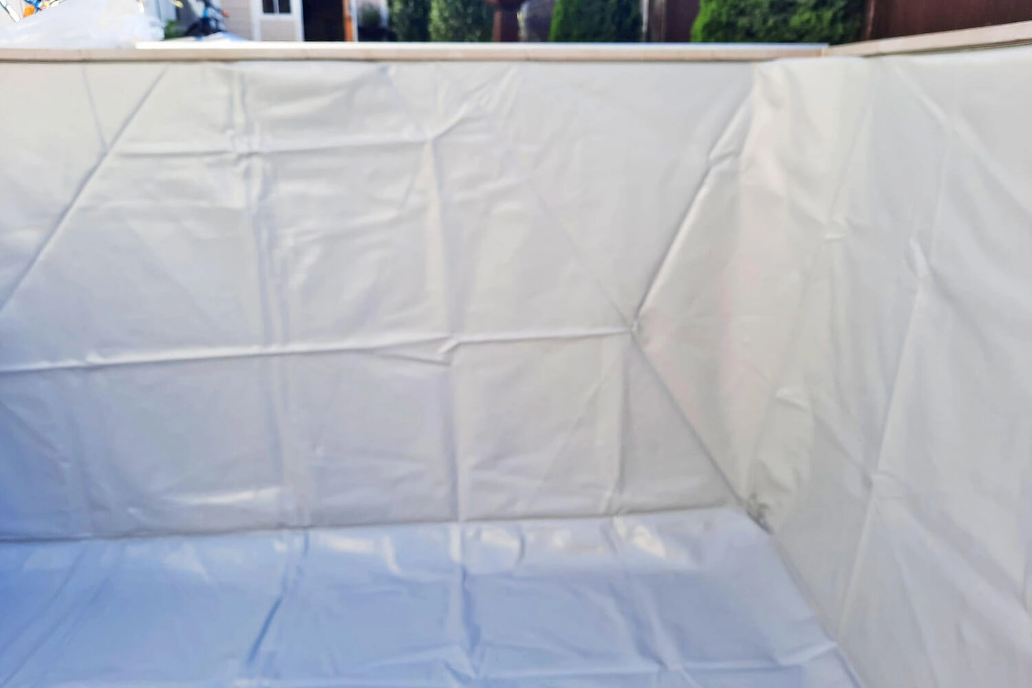 La mise en place du liner, malgré l’escalier qui couvre tout un côté, s’est avérée bien plus facile que prévu.