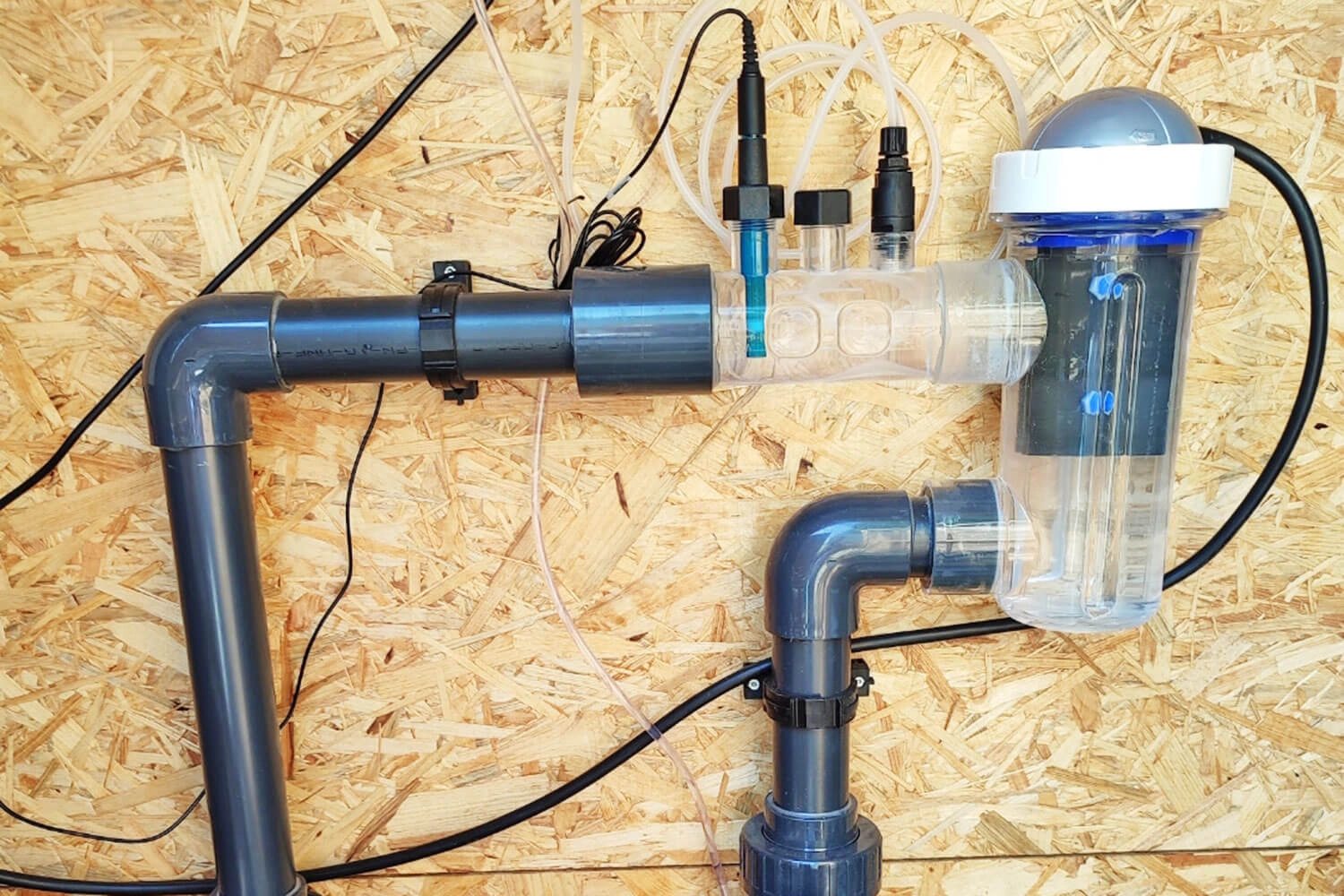 Électrolyseur au sel, projecteurs et pompe à chaleur.