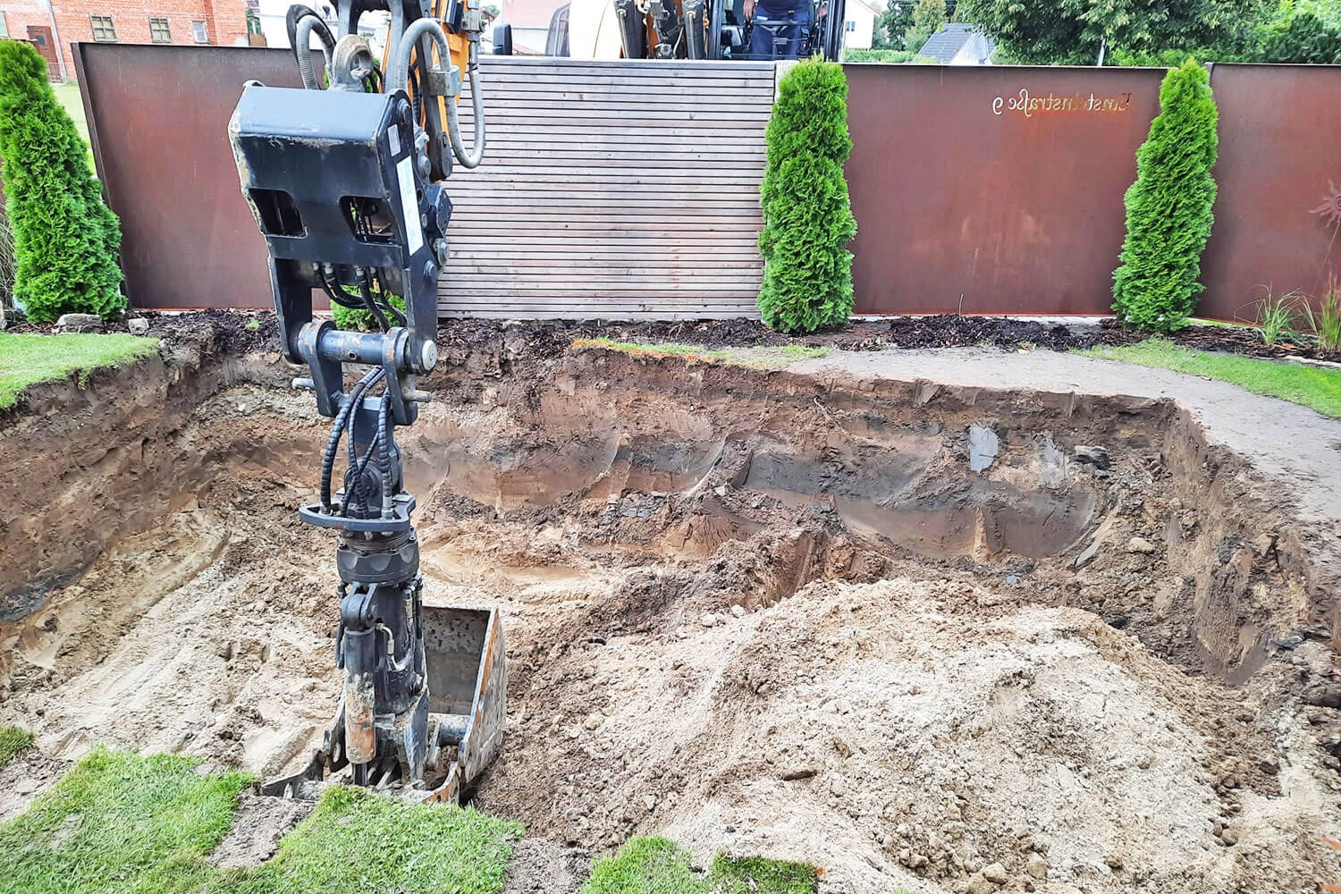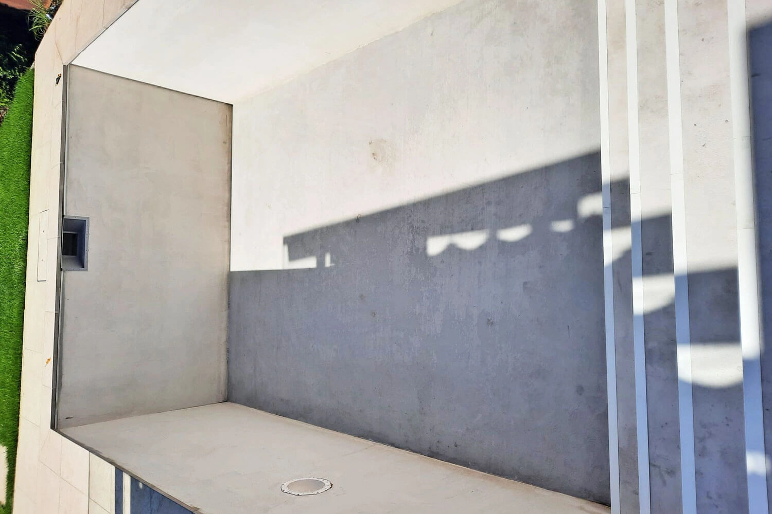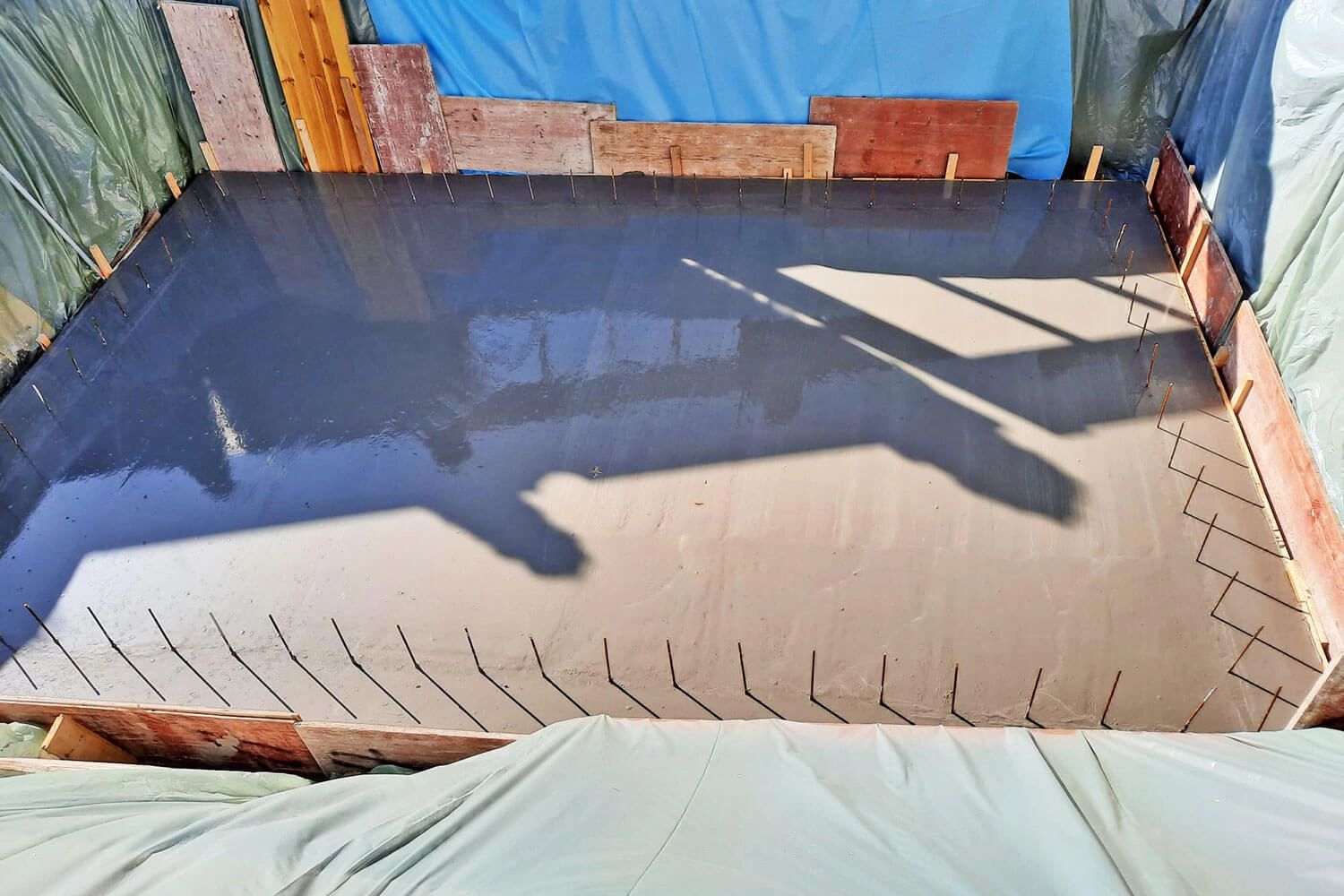 Les travaux de bétonnage et le remplissage des murs en polystyrène ont été plus stressants que prévu. Nous avions lu beaucoup d’expériences négatives sur ce point. C’est pourquoi nous avons fait appel à une entreprise de transport de béton expérimentée dans la construction de piscines. Le remplissage lent avec une pompe à chape électrique, un tuyau long et des aides solides a très bien fonctionné.