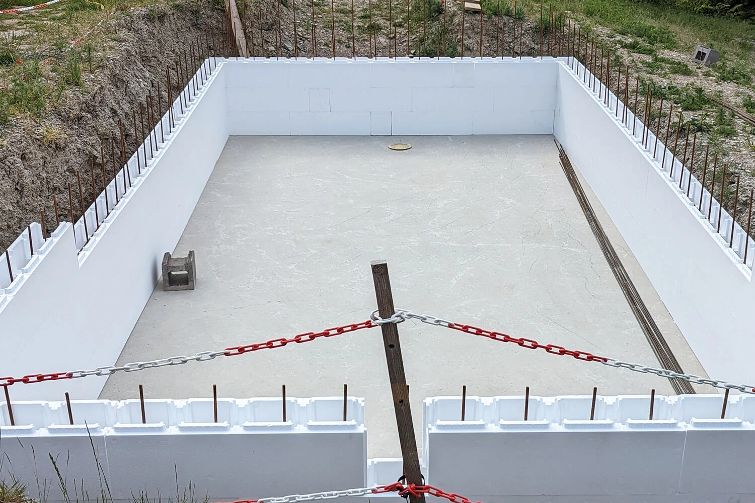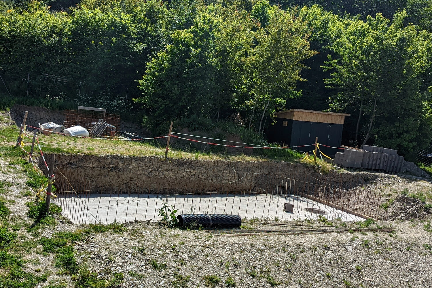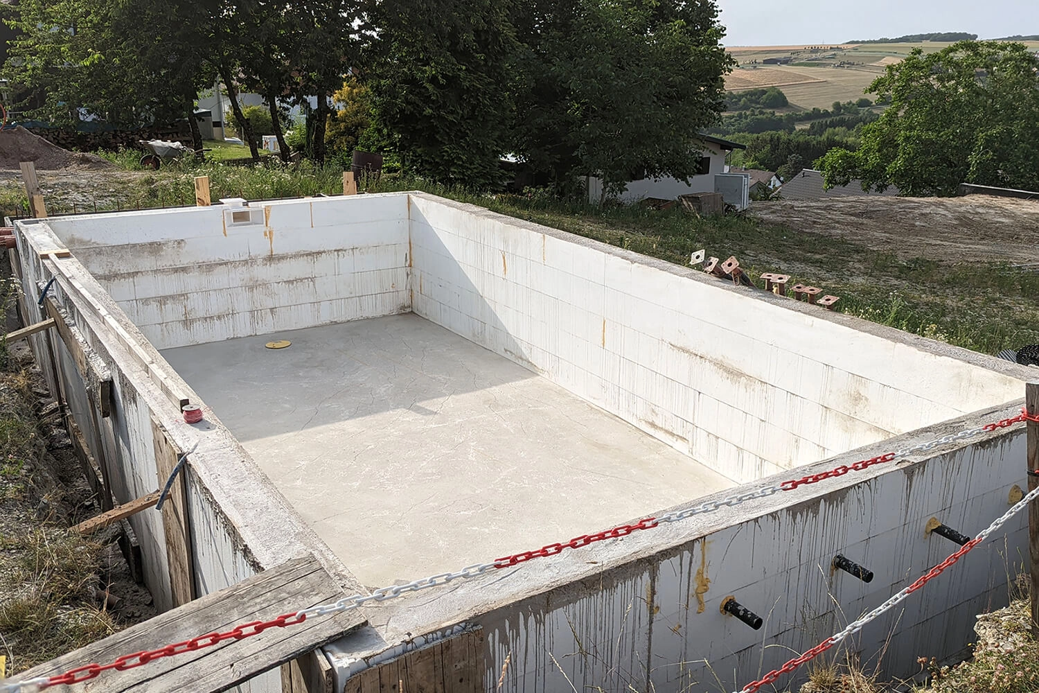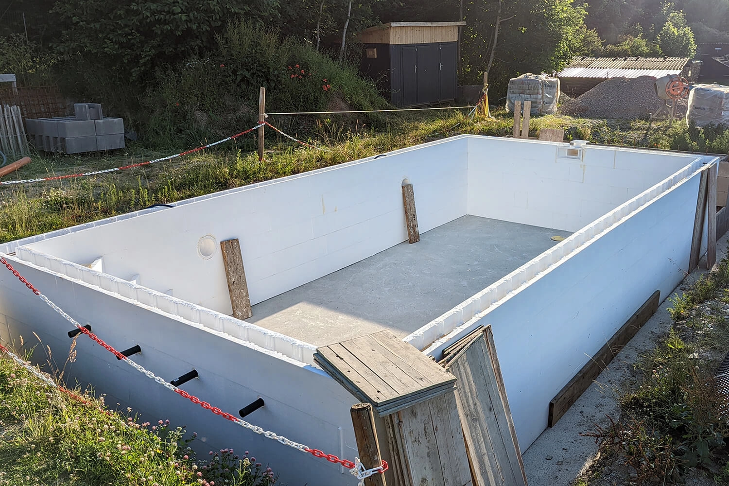Le premier plongeon était vraiment génial après tous les efforts. La température de l’eau, grâce au remplissage lent et aux températures élevées en journée, était déjà de 26 °C.