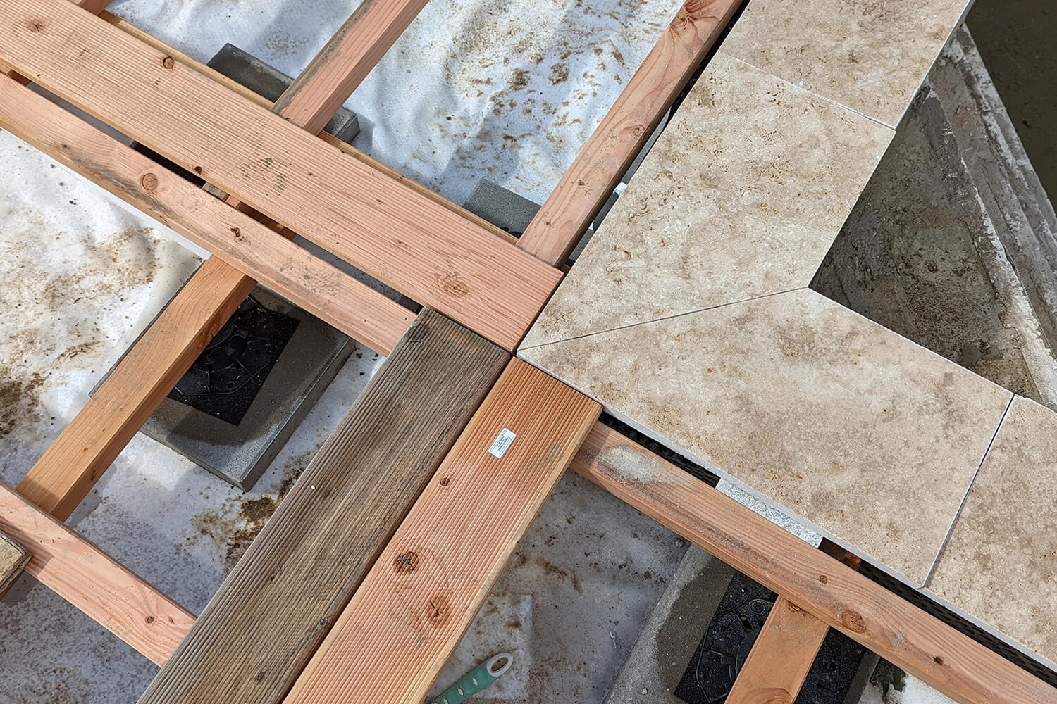 Les blocs ont été vraiment faciles à poser. Le liner s’est également très bien installé, à l’exception de deux coins.