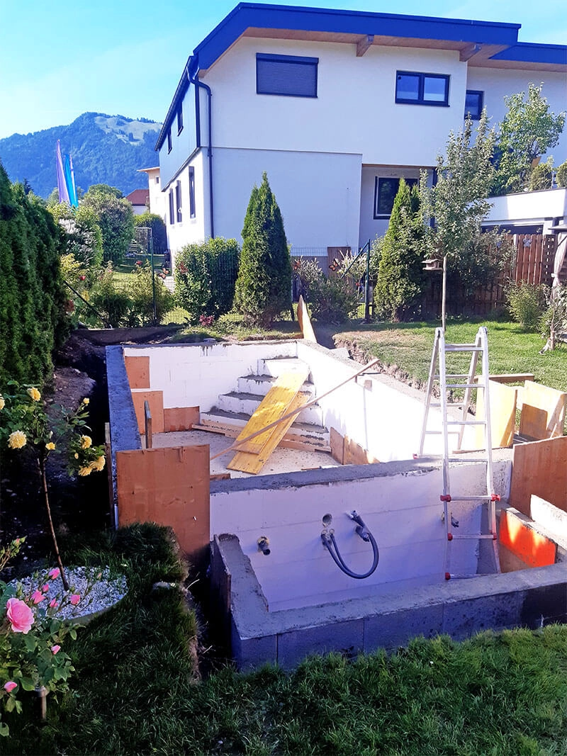 Piscine en polystyrène avec escalier d'angle de la famille F., Kirchbichl