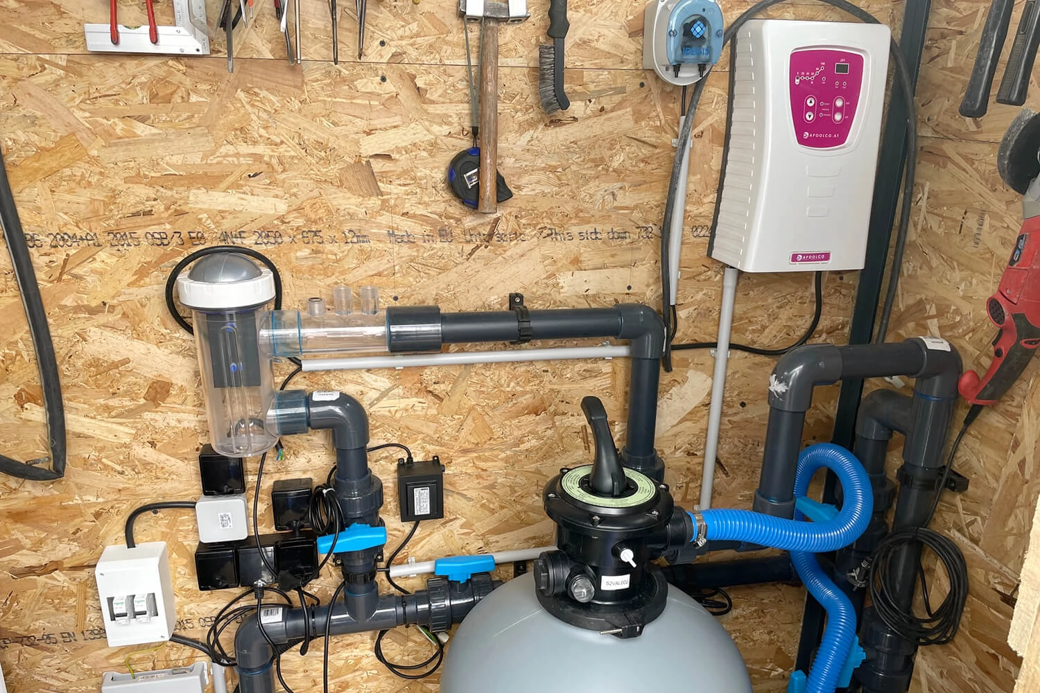 Projecteurs, électrolyseur de sel, abri de piscine et pompe à chaleur. Un robot de nettoyage ou nageur athlétique figure encore sur notre liste d’achats.