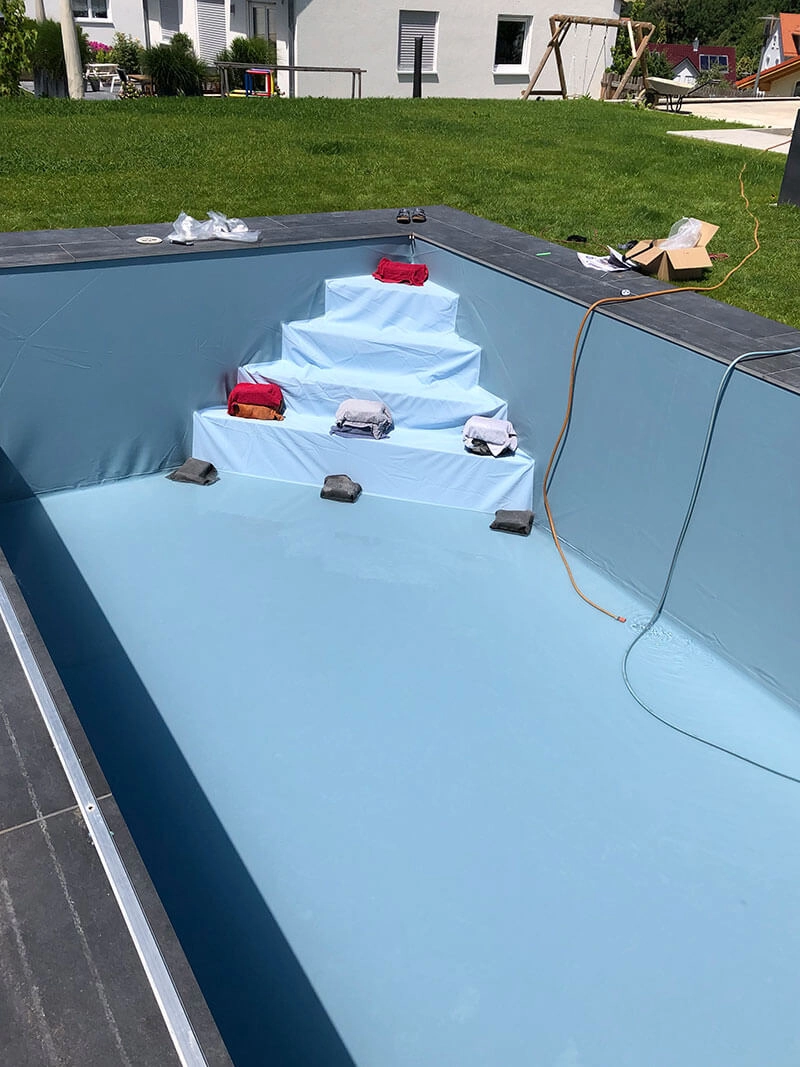 Piscine en polystyrène avec escalier d'angle de la famille G., Hohenkammer