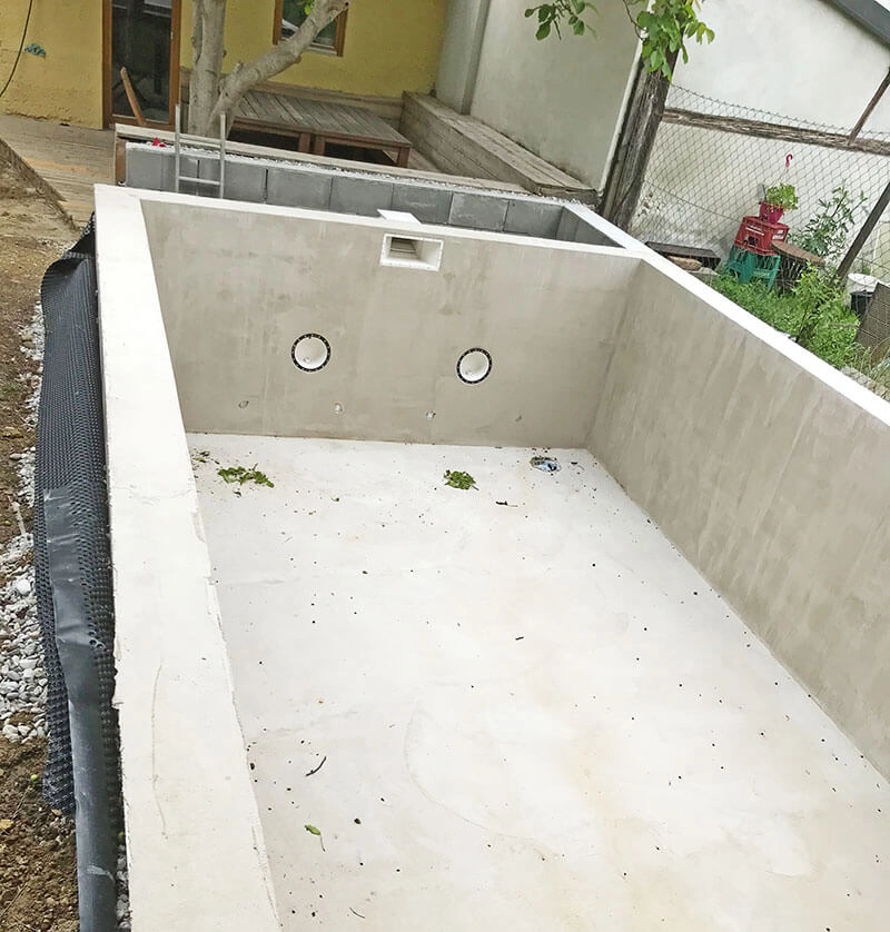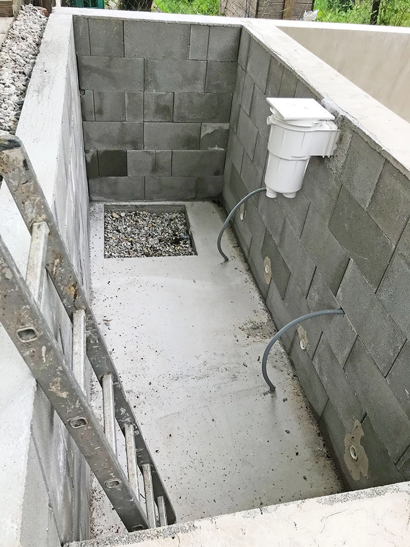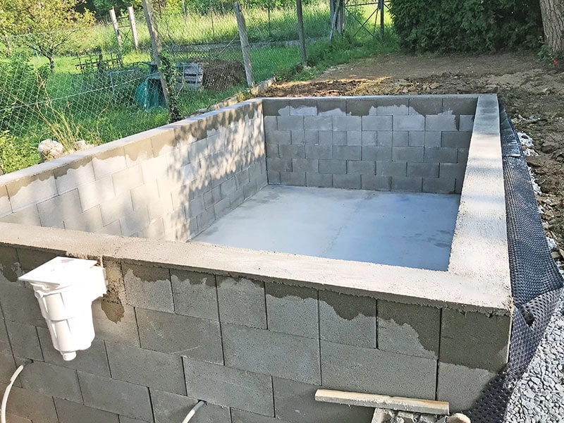 En raison de la forte demande de piscines en polystyrène liée au Covid, les blocs en polystyrène étaient malheureusement en rupture de stock. Nous avons donc dû utiliser des blocs en béton, ce qui a rendu la construction du bassin beaucoup plus difficile. Apoolco a néanmoins fourni un excellent package et a toujours été d’une grande aide. Merci à notre conseillère Mme Pachner !