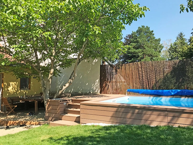 Piscine en polystyrène avec escalier d'angle de la famille G., Mödling