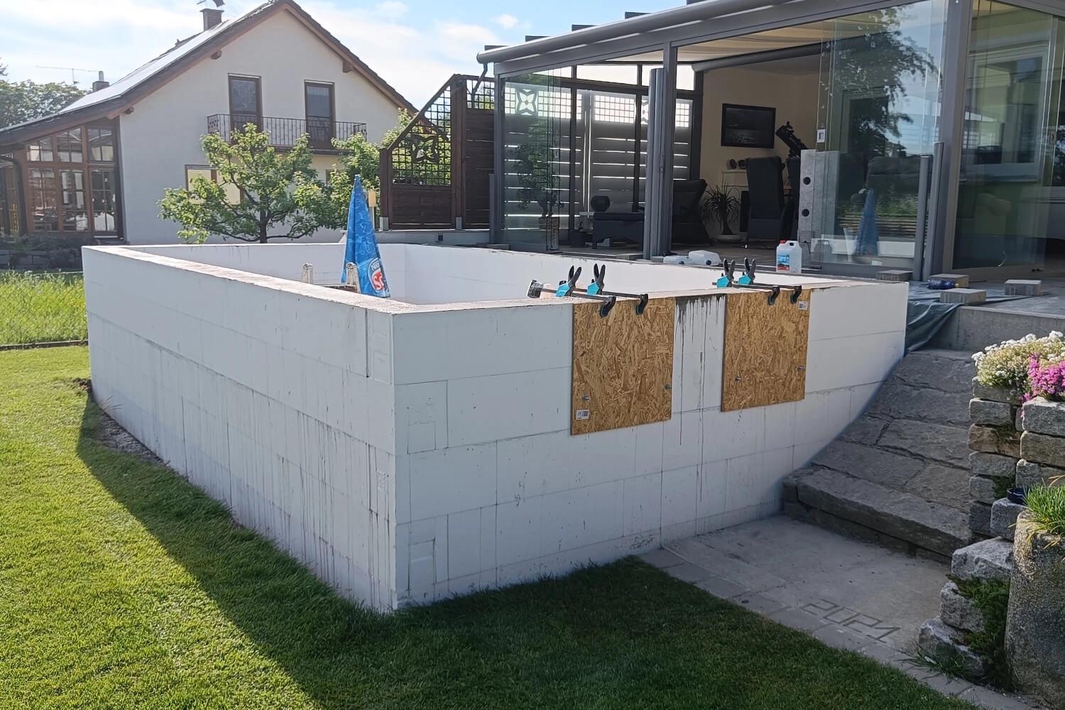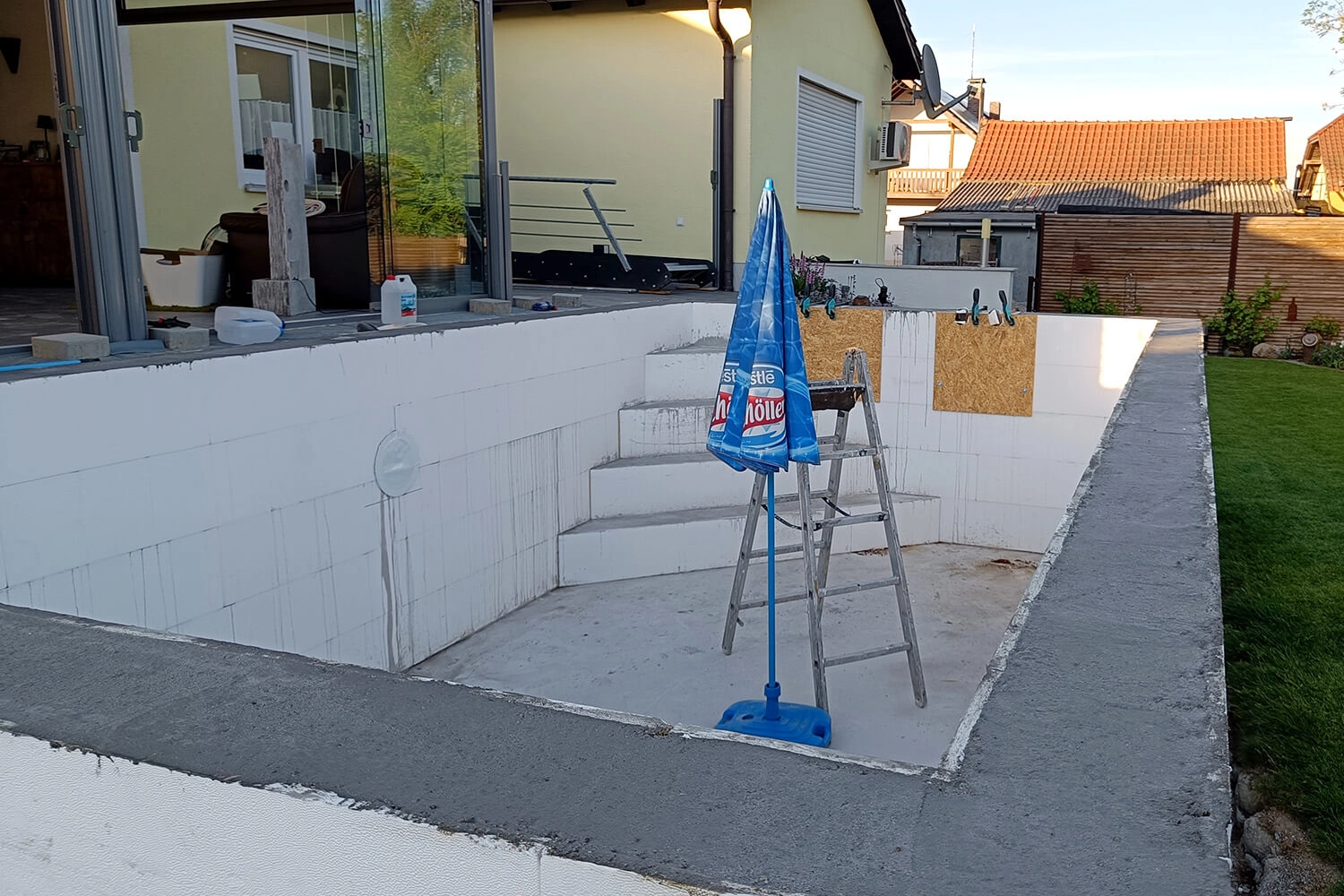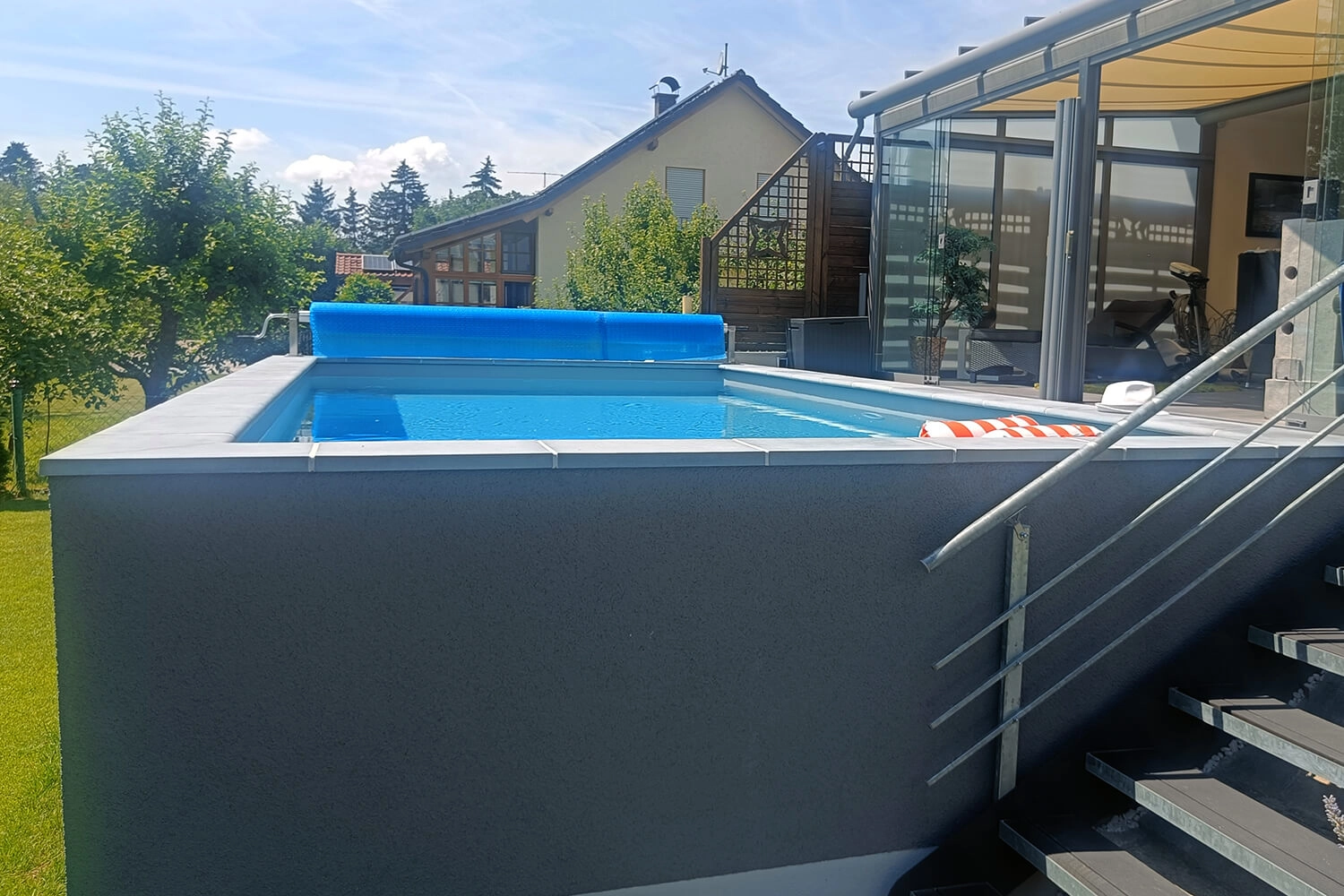 Piscine en polystyrène avec escalier d'angle de la famille H., Kirchroth