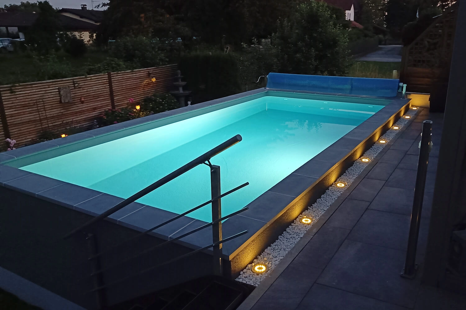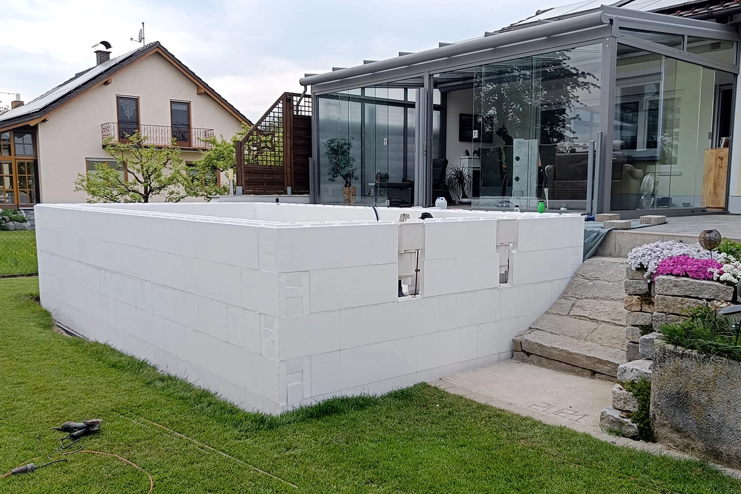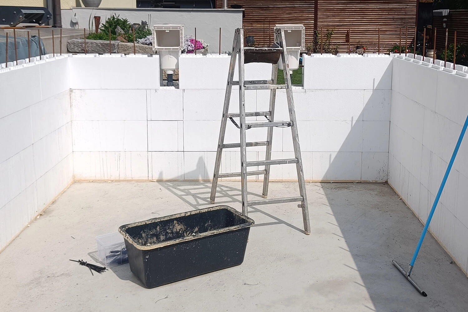 Piscine en polystyrène avec escalier d'angle de la famille H., Kirchroth