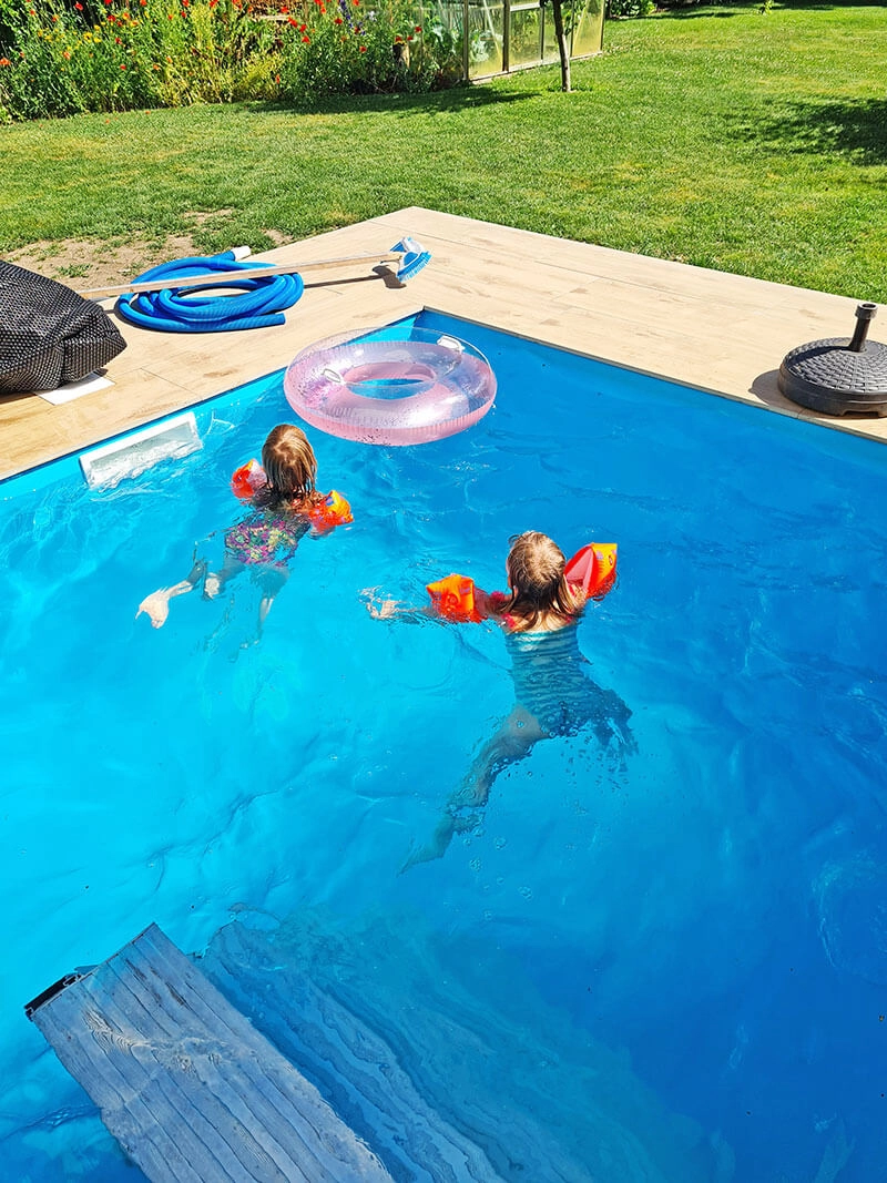 Fête d’anniversaire en été avec barbecue et beaucoup d’amis — c’était le premier grand événement pour la piscine.