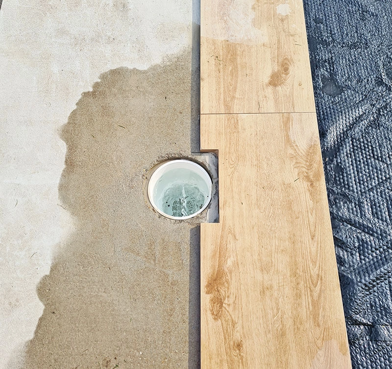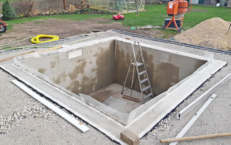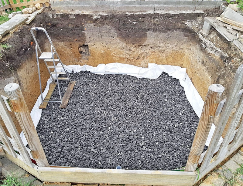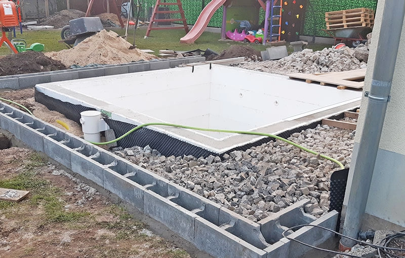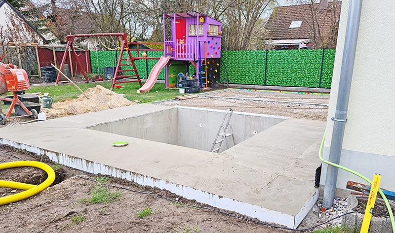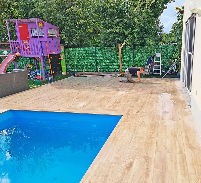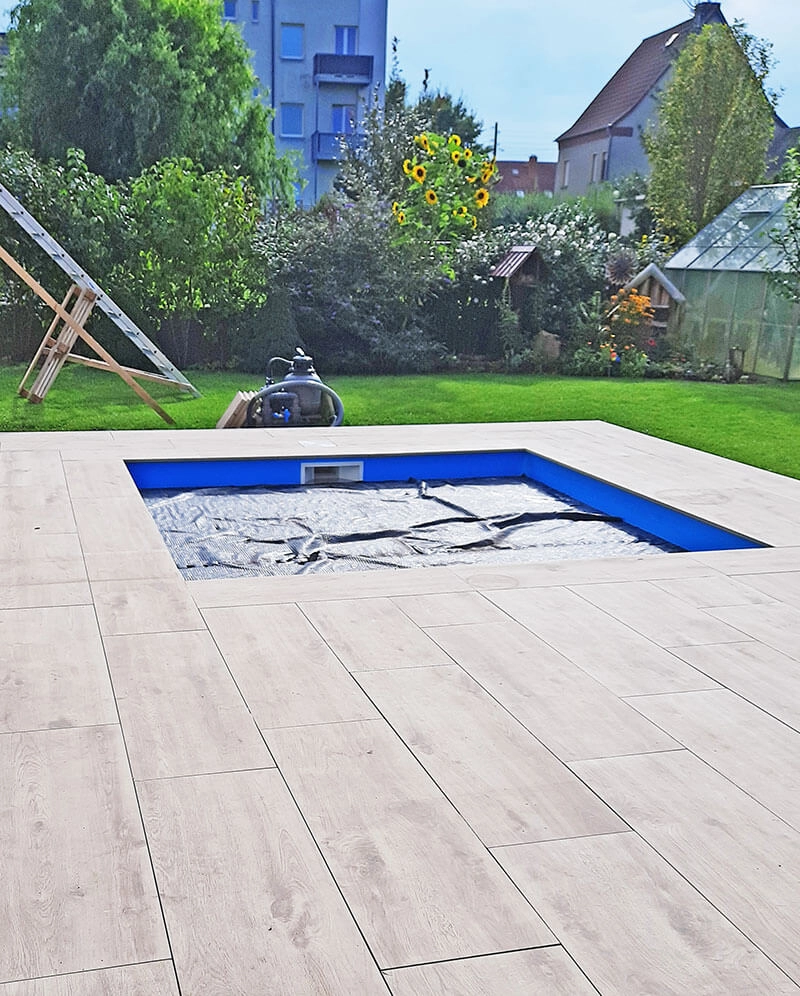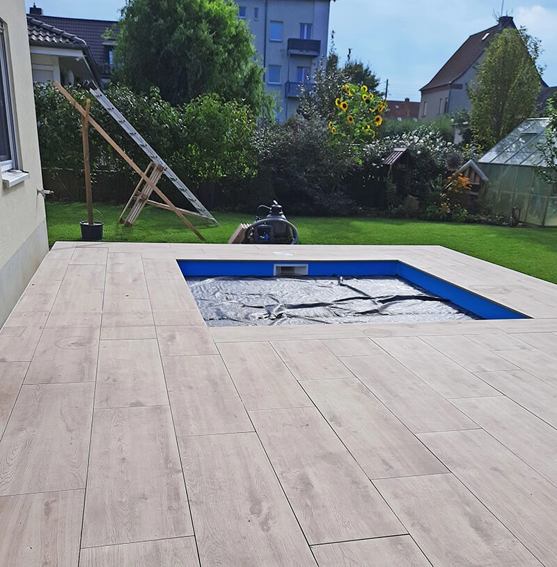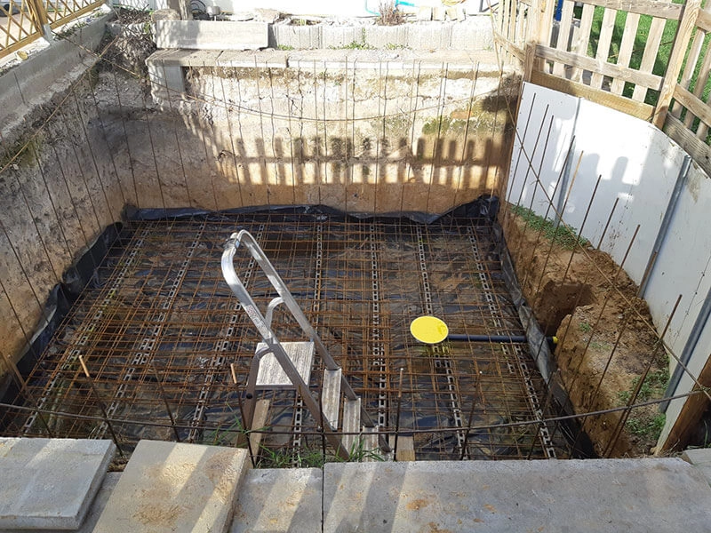 Covid… et la piscine hors-sol avait fait son temps… Construction de terrasse avec raccordement pour piscine :)
