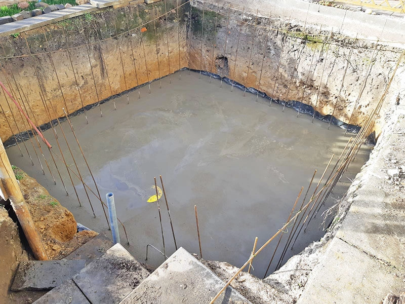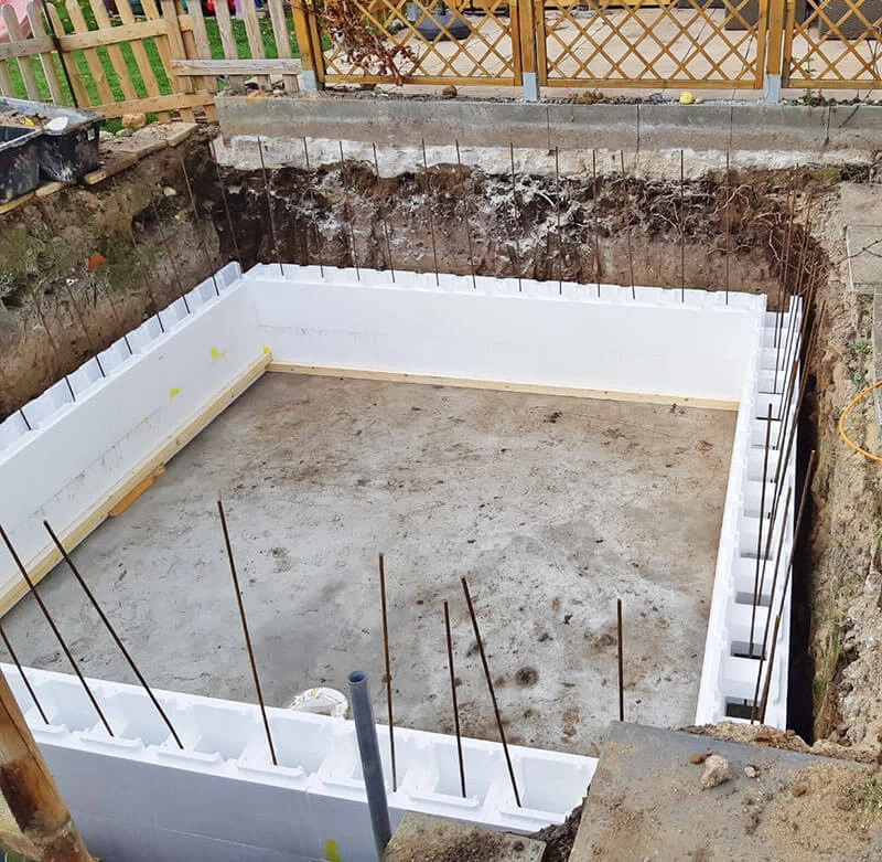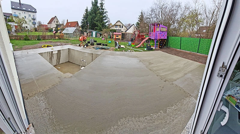 Plus difficile a été le coffrage des murs et le coulage du béton. Nous avons eu beaucoup de mal à éviter la formation de bosses.