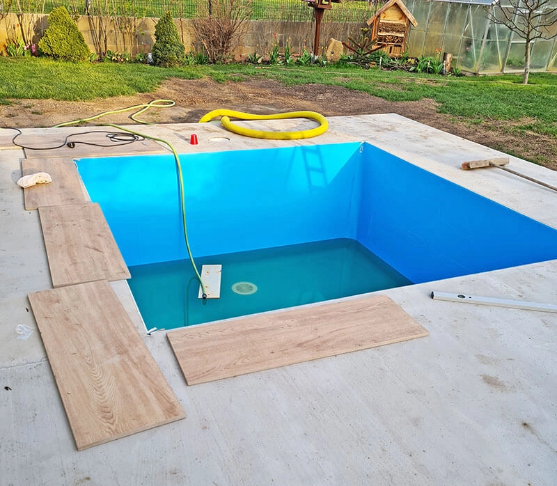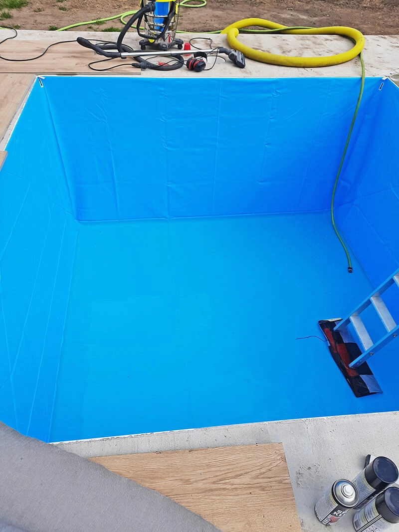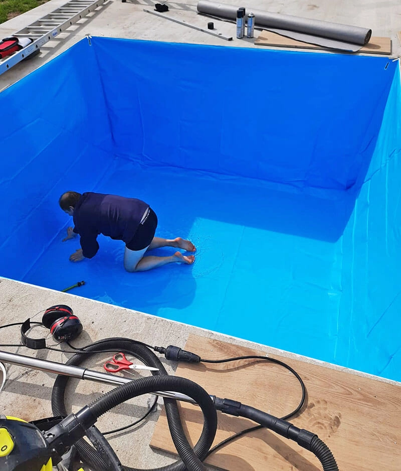 La pose du liner s’est faite plus facilement que prévu. Nous pensions rencontrer plus de difficultés pour l’obtenir sans plis, mais tout s’est très bien passé.