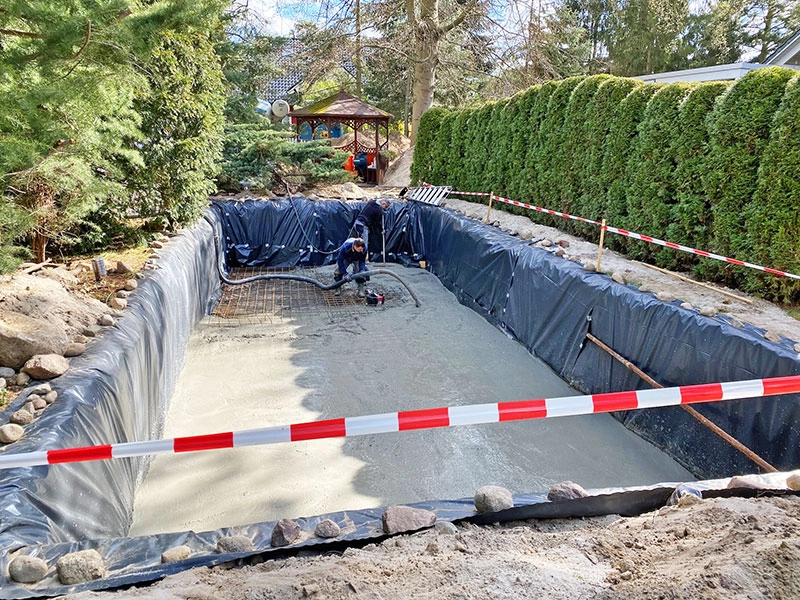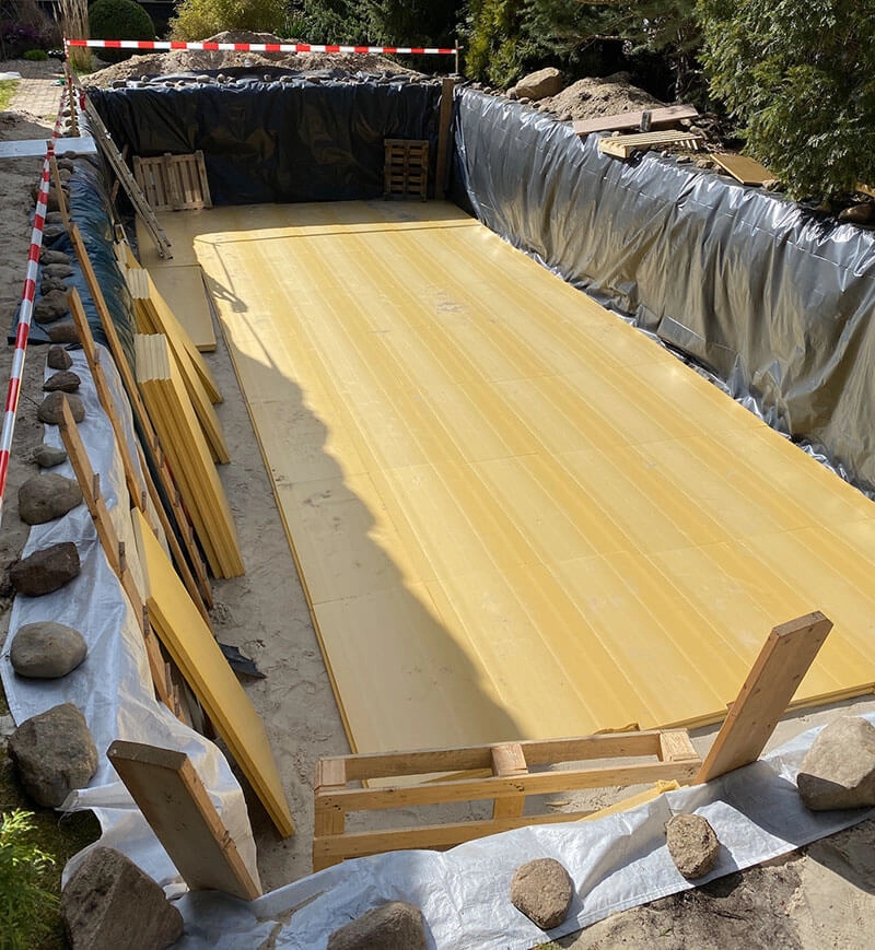 Piscine en polystyrène avec escalier d'angle de la famille H., Zeuthen