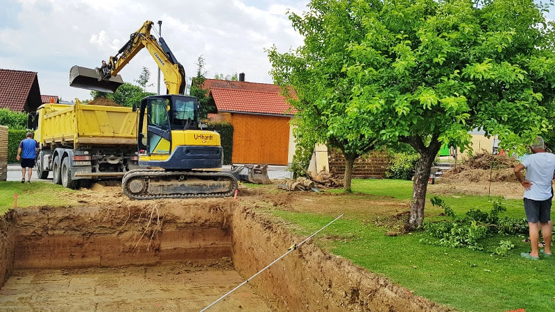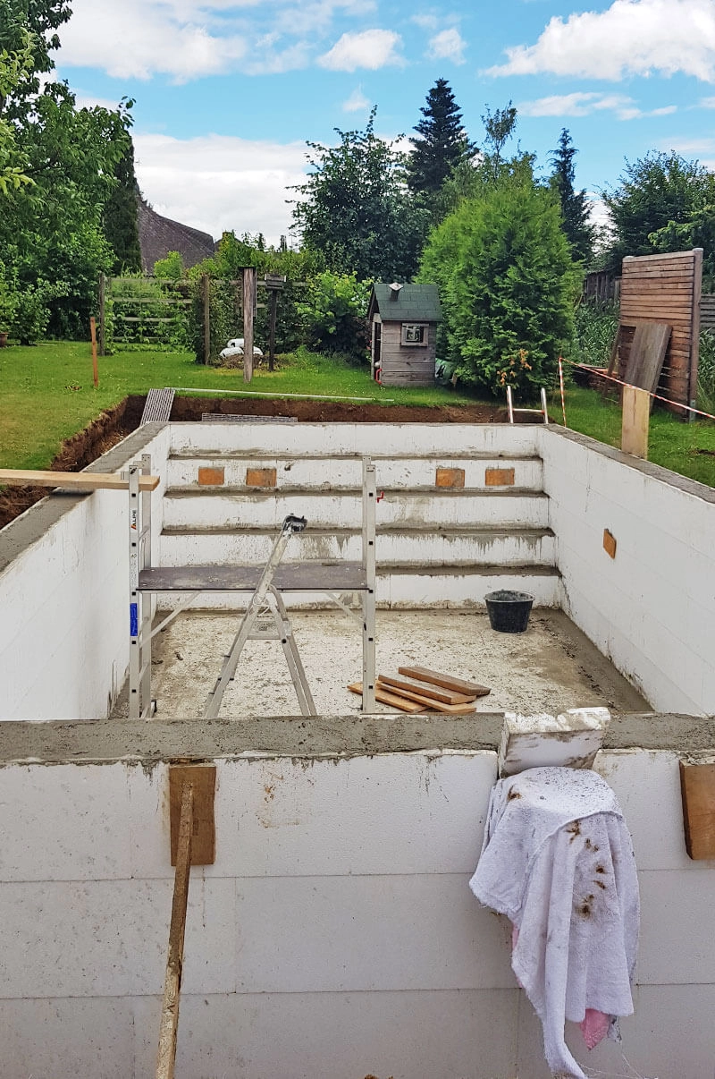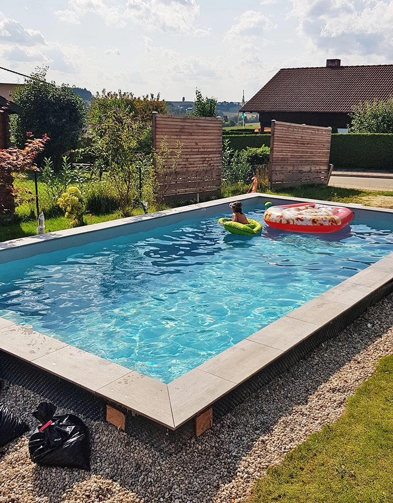 Piscine en polystyrène avec escalier large de la famille J., Ruhstorf