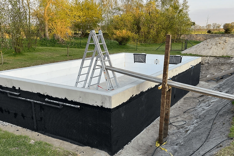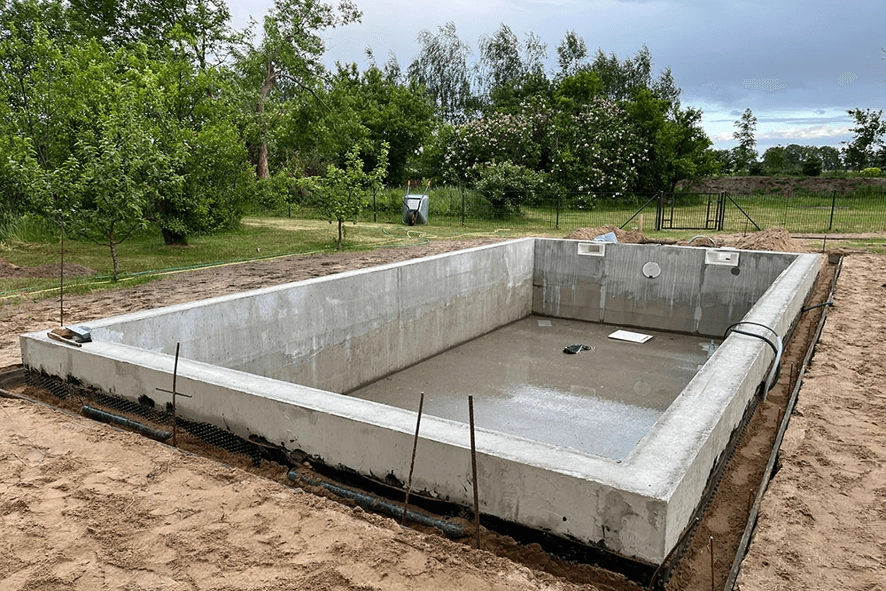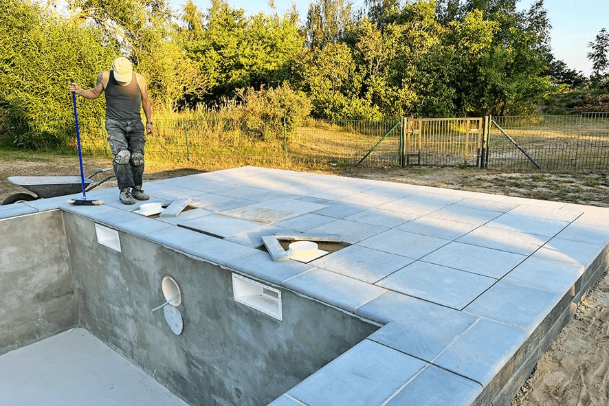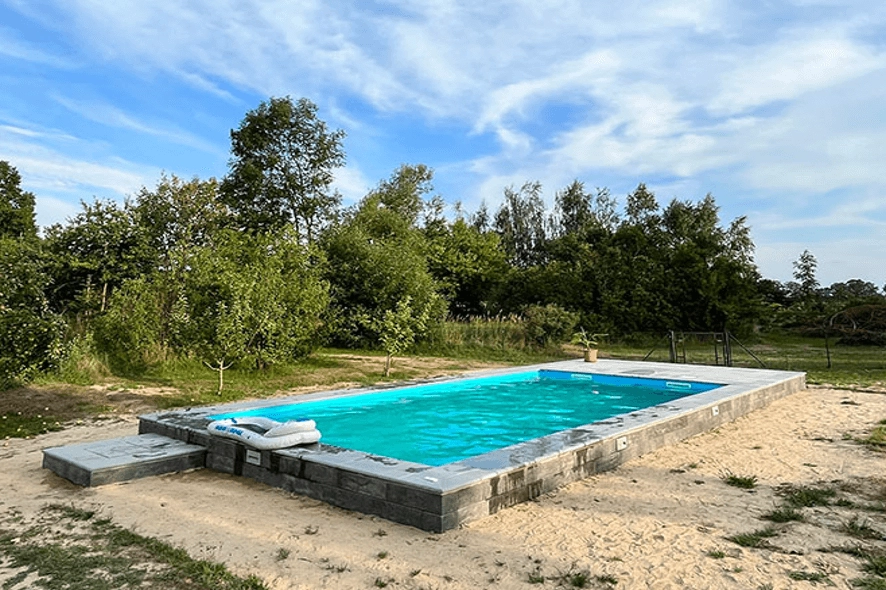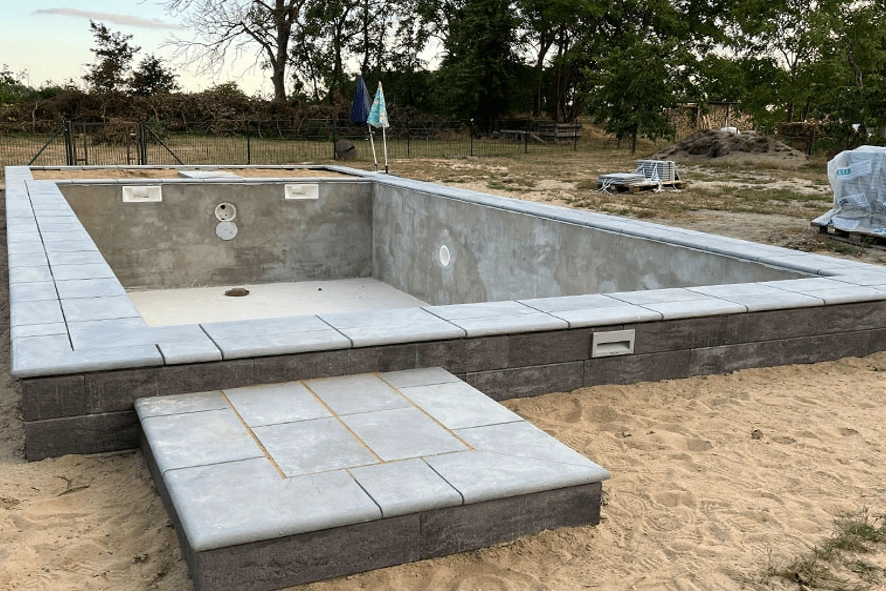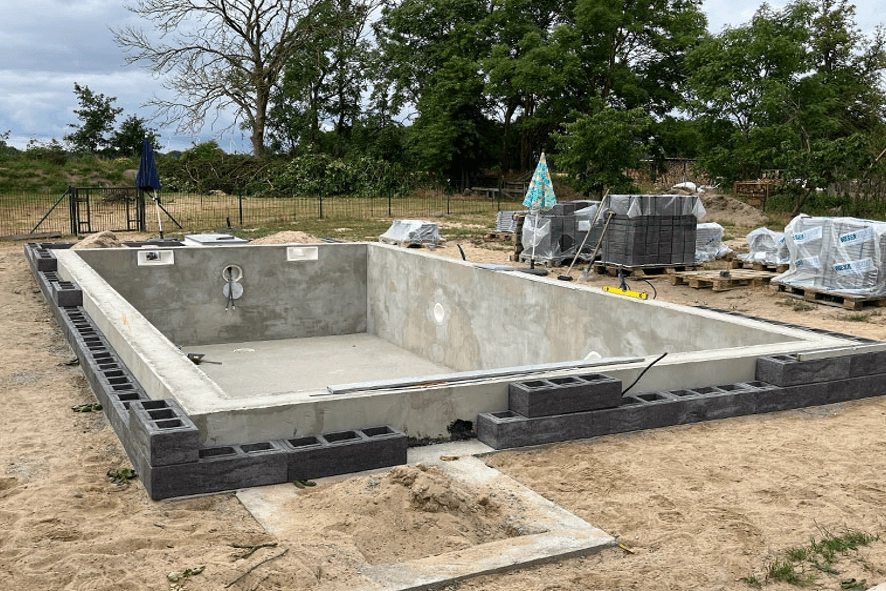 Les conseils, l’achat et l’assistance pour des questions concernant le montage de la piscine par Apoolco ont été excellents. Nous avons confié l’excavation et la réalisation de la dalle en béton à des entreprises locales. Ensuite, nous avons poursuivi seuls. La pose des blocs, l’installation des armatures métalliques et la découpe des éléments intégrés se sont très bien déroulées. Un point très important, absent dans le manuel de montage : nous avons relié tous les blocs entre eux avec des colliers de serrage — sur les côtés, en bas et en haut. Si l’on souhaite remplir les blocs avec une pompe à béton, comme nous l’avons fait, c’est indispensable. La première rangée a été remplie à moitié à la main avec du béton prêt à l’emploi et laissée durcir. Quand la pompe est arrivée, tout était stable et bien en place. Le poids du béton liquide est énorme pour les blocs en polystyrène ; sans cette précaution, je doute que tout serait resté en place. Les autres travaux se sont bien déroulés. Nous avons installé un local supplémentaire pour la nage à contre-courant et prolongé la piscine de 2,8 m vers l’arrière, car nous avons décidé par la suite de poser un toit de piscine. La livraison est prévue dans environ 4 semaines. L’aménagement du jardin autour de la piscine reste à faire. Hier, nous avons fait le premier bain et nous sommes très heureux de notre nouvelle piscine. La nage à contre-courant est géniale et indispensable.