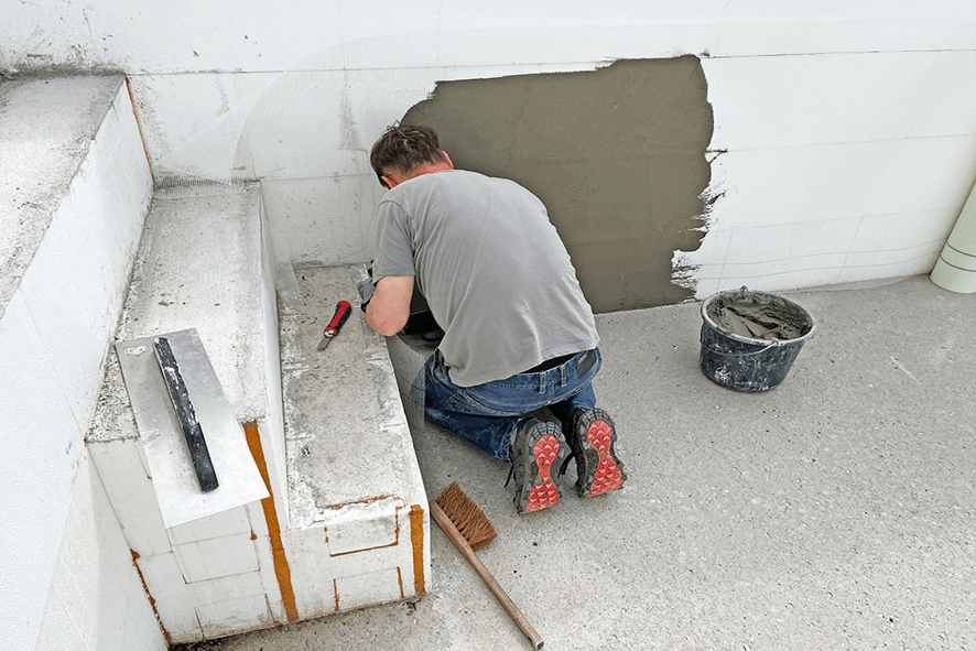 La pose des blocs en polystyrène et l’installation des armatures métalliques.