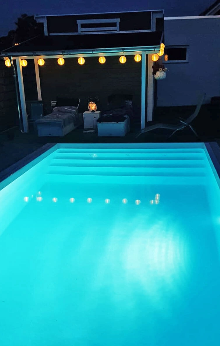 Nous avons ajouté un projecteur, et prévoyons également d’installer une pompe à chaleur et un robot de piscine.