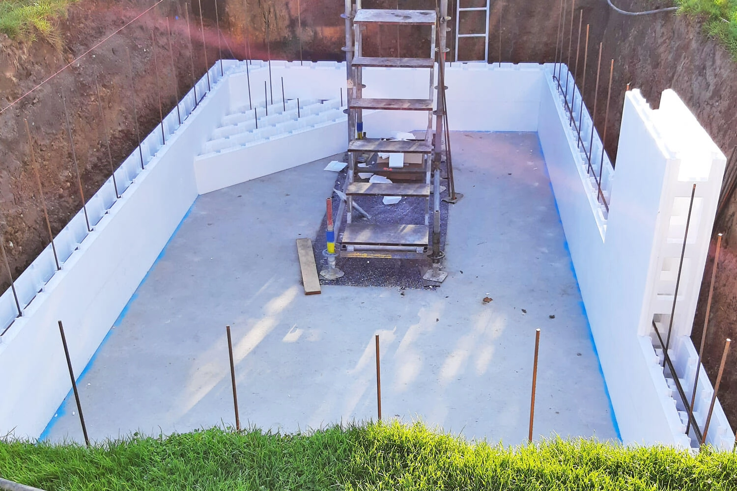 Piscine en polystyrène avec escalier d'angle de la famille M., Affing