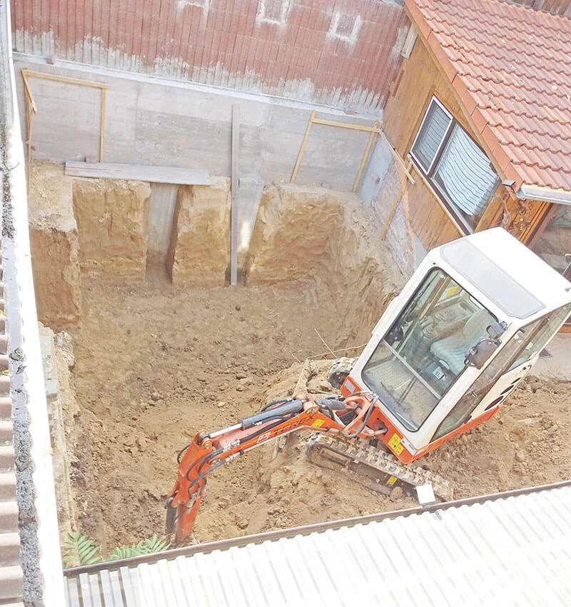 L’excavation de la terre a été assez exigeante. Avec plus de 30°C, nous avons déplacé presque 90 tonnes de terre.
