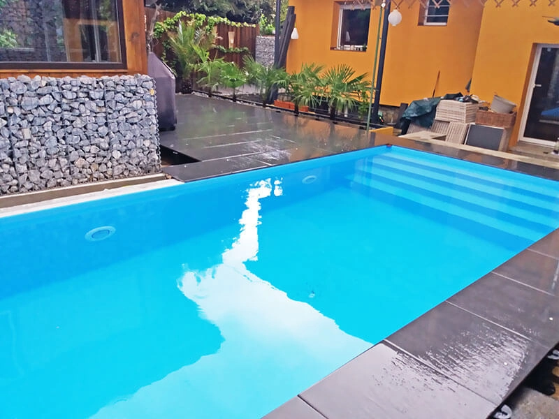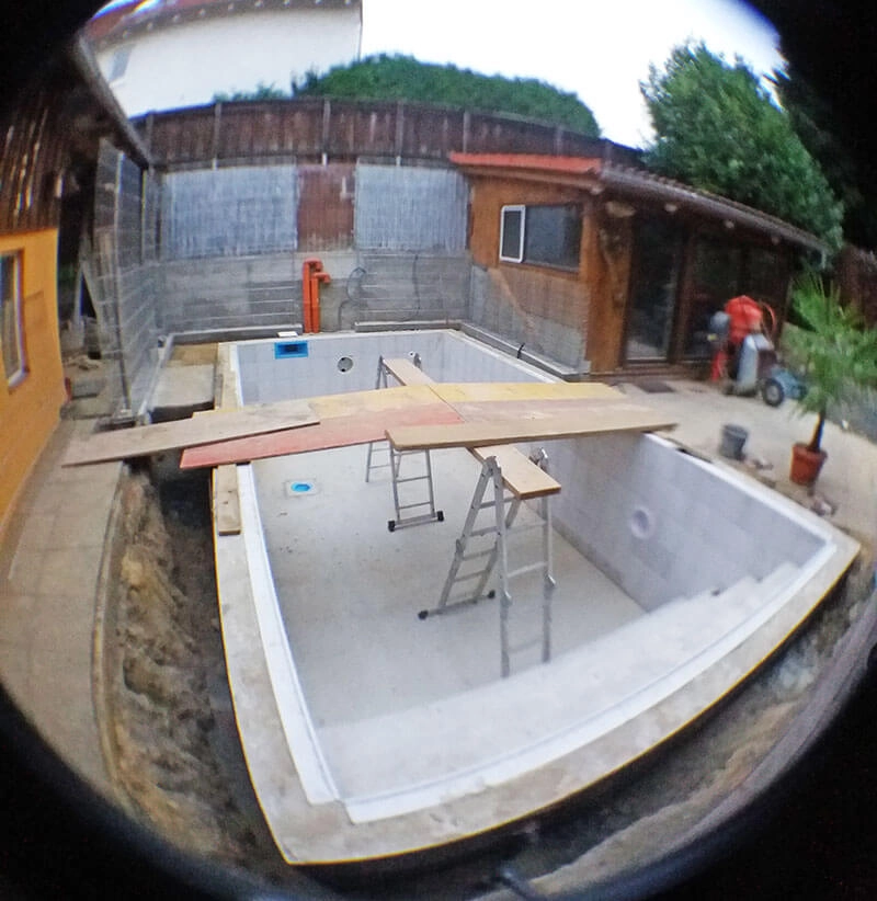 Malgré l’effort considérable, cela en valait la peine. En ce moment, il est merveilleux de se rafraîchir dans le jardin. Notre petite-fille adore également jouer dans la piscine. Dans l’ensemble, le kit Apoolco était très bien adapté et facile à monter pour un bricoleur. J’ai pu presque construire la piscine en polystyrène seul et installer moi-même toutes les connexions techniques.