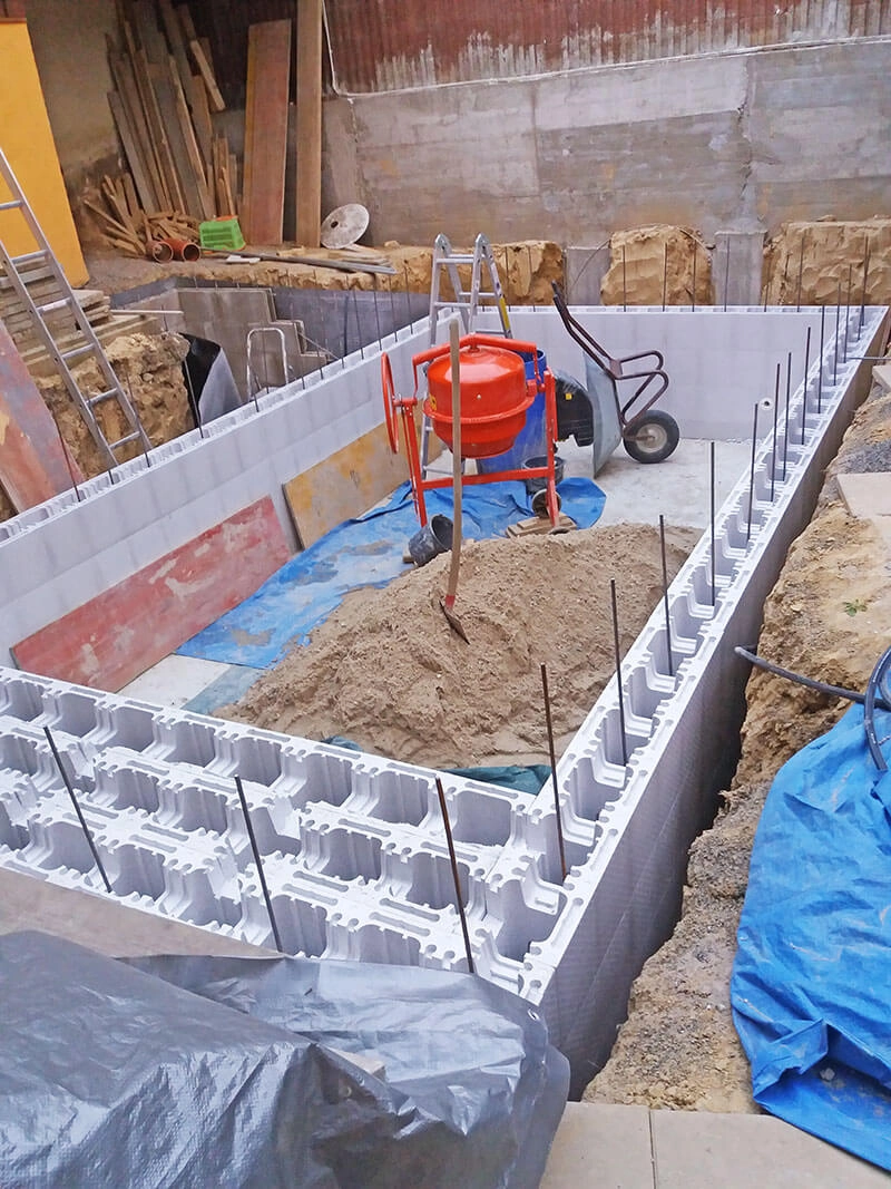 Les blocs en polystyrène étaient faciles à monter. Le liner prêt à poser était facile à installer à trois personnes.