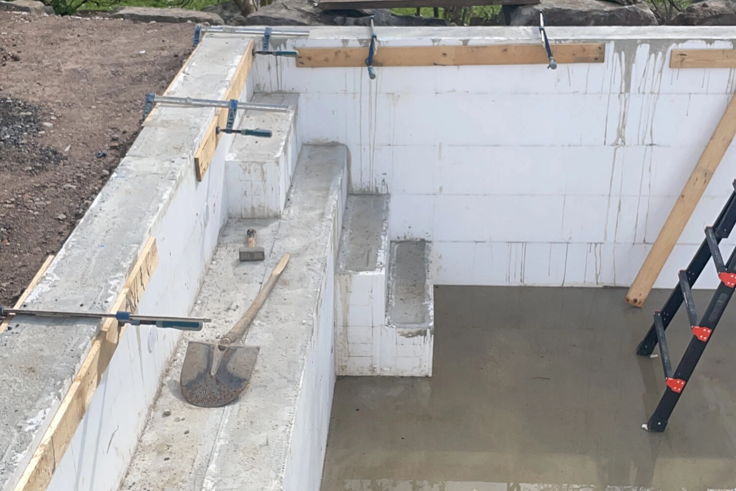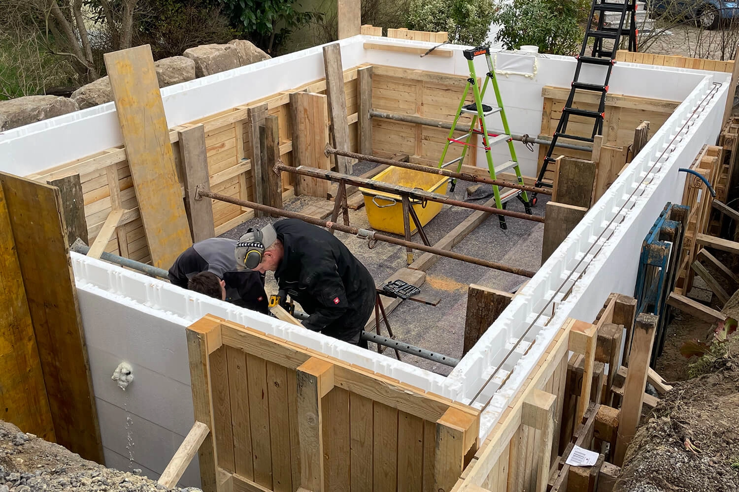 Le coffrage du local technique, notamment tout le soutènement par en dessous.