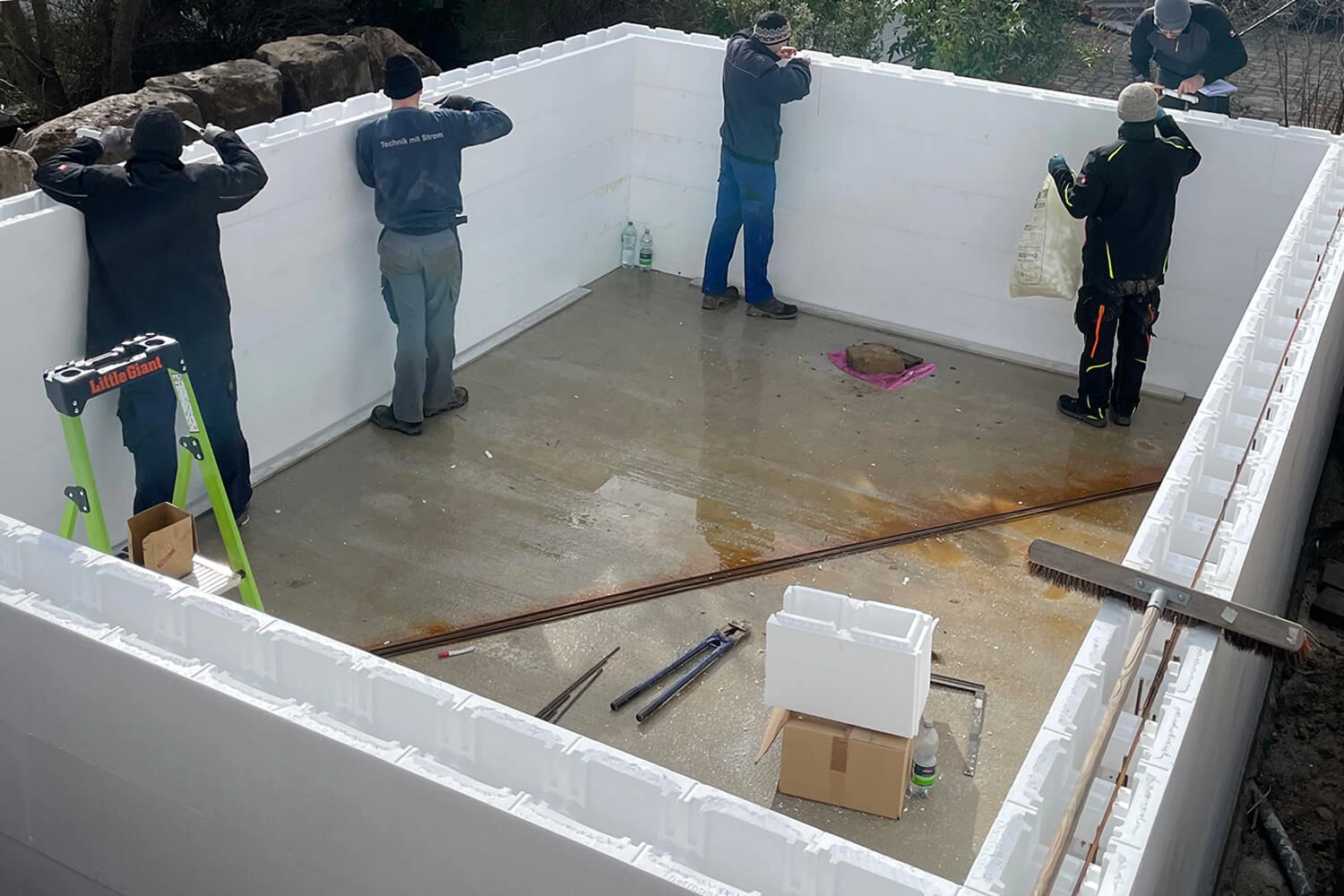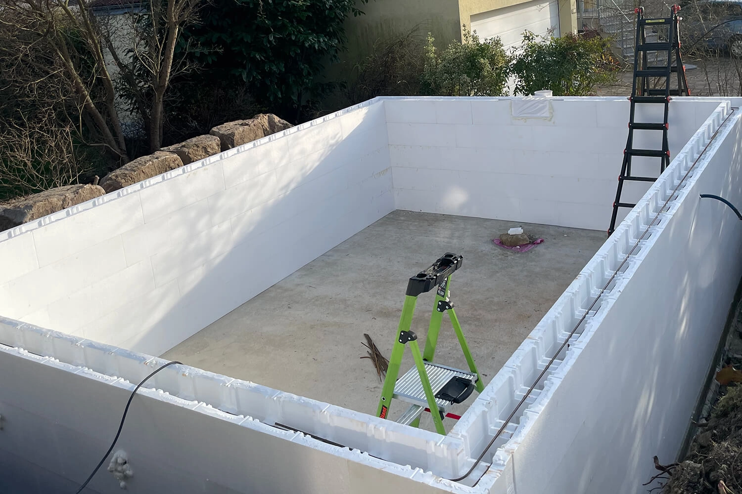 Piscine en polystyrène avec escalier large de la famille P., Neuried