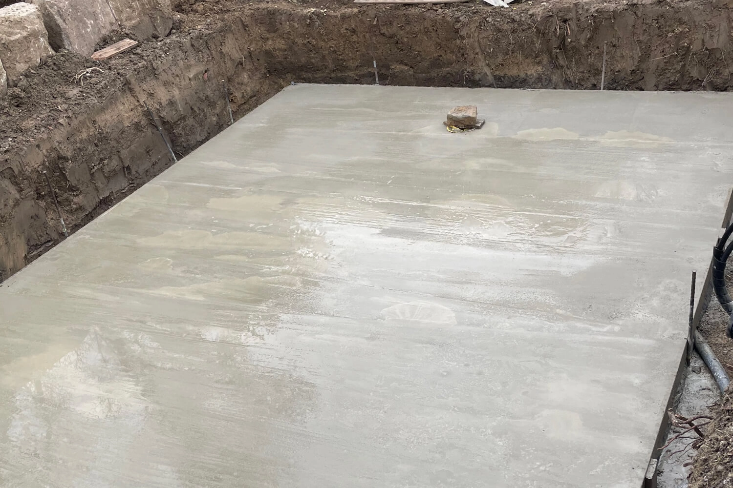 Terrassement, ferraillage, béton, gravier, main-d’œuvre.
