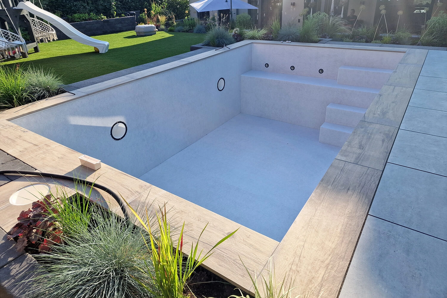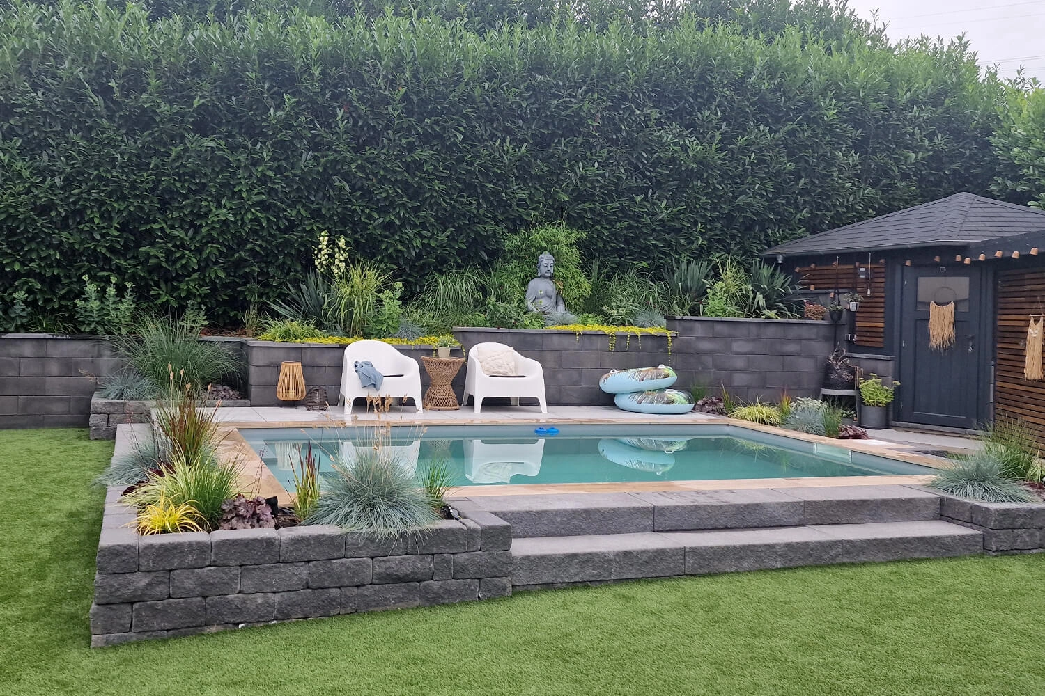 Nous voulions un petit air de vacances à la maison et n’avions pas envie d’emmener constamment les enfants dans des piscines publiques surpeuplées.