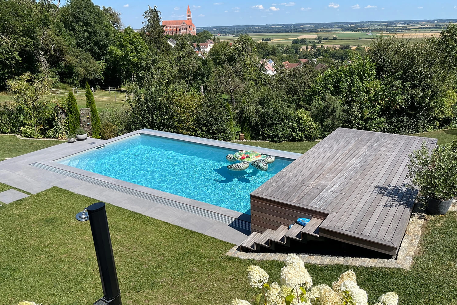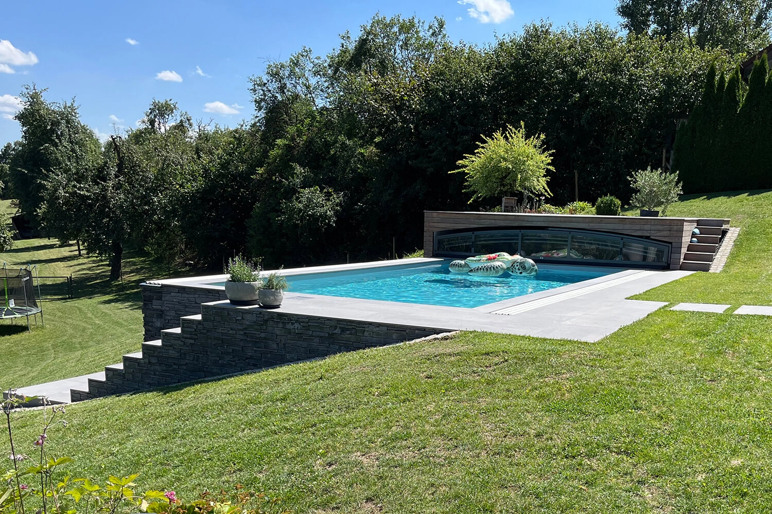 Pour nous, l’objectif était d’apporter plus de qualité de vie dans notre propre jardin. Nous y sommes parvenus avec succès et nous ne renoncerions plus à notre piscine. Pour tous ceux qui souhaitent construire leur propre piscine, je ne peux que recommander Apoolco ! Suivez le manuel de construction et contactez Apoolco en cas de questions. On m’a toujours aidé rapidement. Les collaboratrices sont extrêmement compétentes et toujours très, très amicales et serviables.