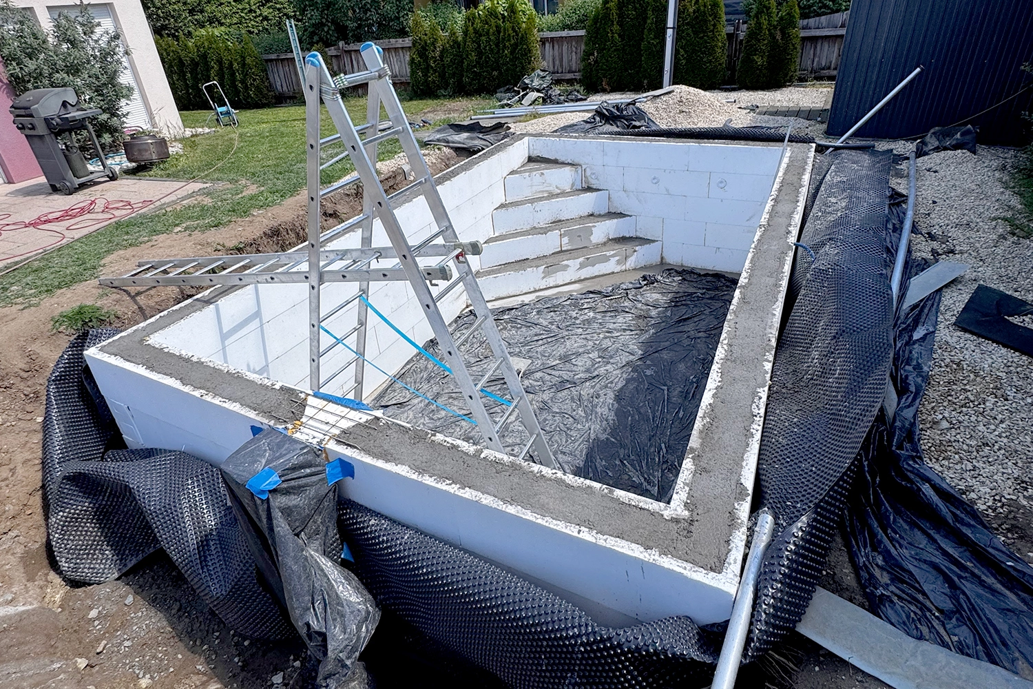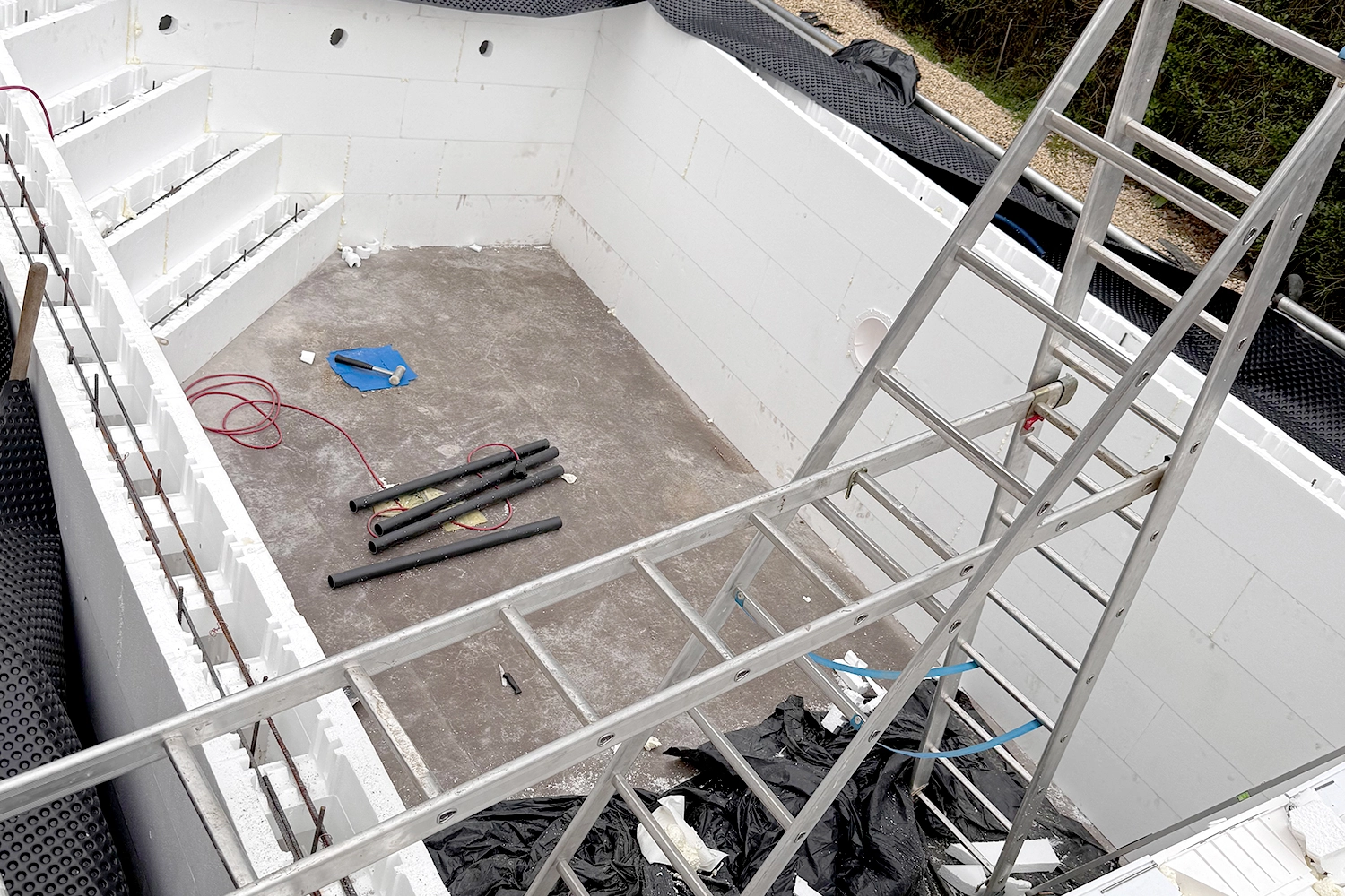 La pose du liner s’est faite très facilement. L’installation de l’escalier n’a pas été trop difficile non plus.