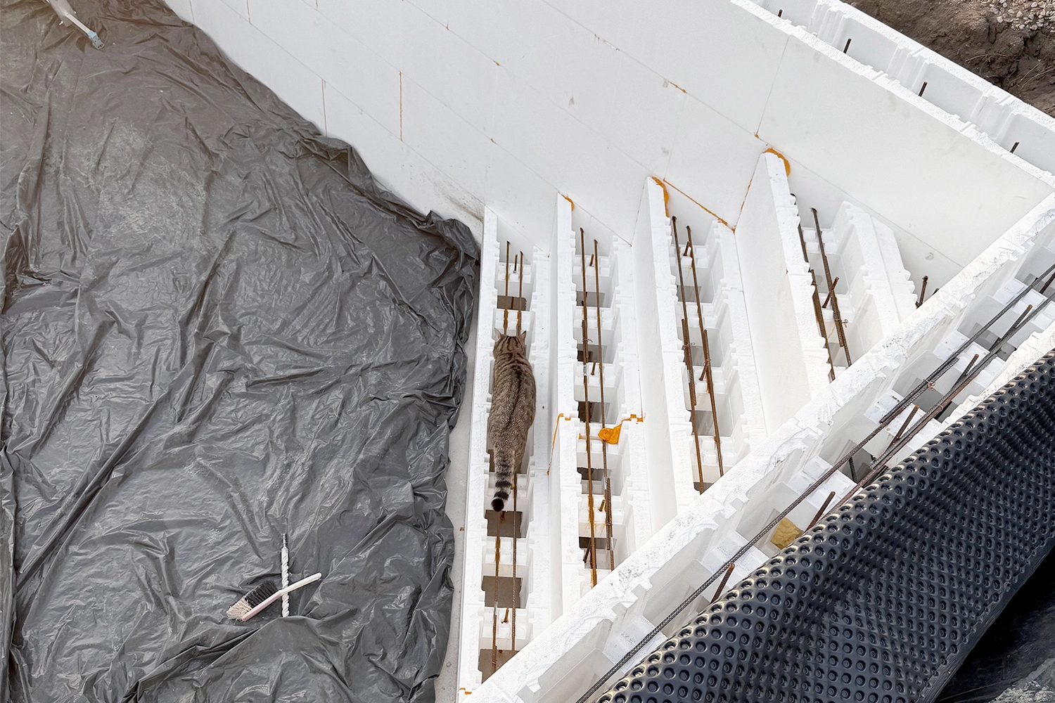 Le remplissage des blocs de la piscine est un peu délicat, surtout dans les coins où les clapets peuvent se détacher si l’on utilise une pompe pour remplir.