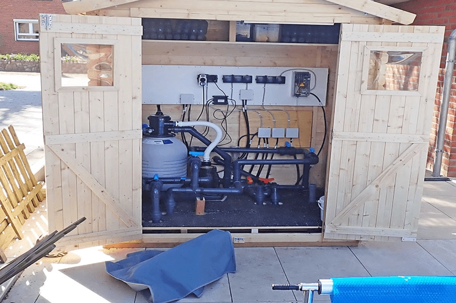 Deux projecteurs ont été installés et une pompe à chaleur qui assure une température agréable.