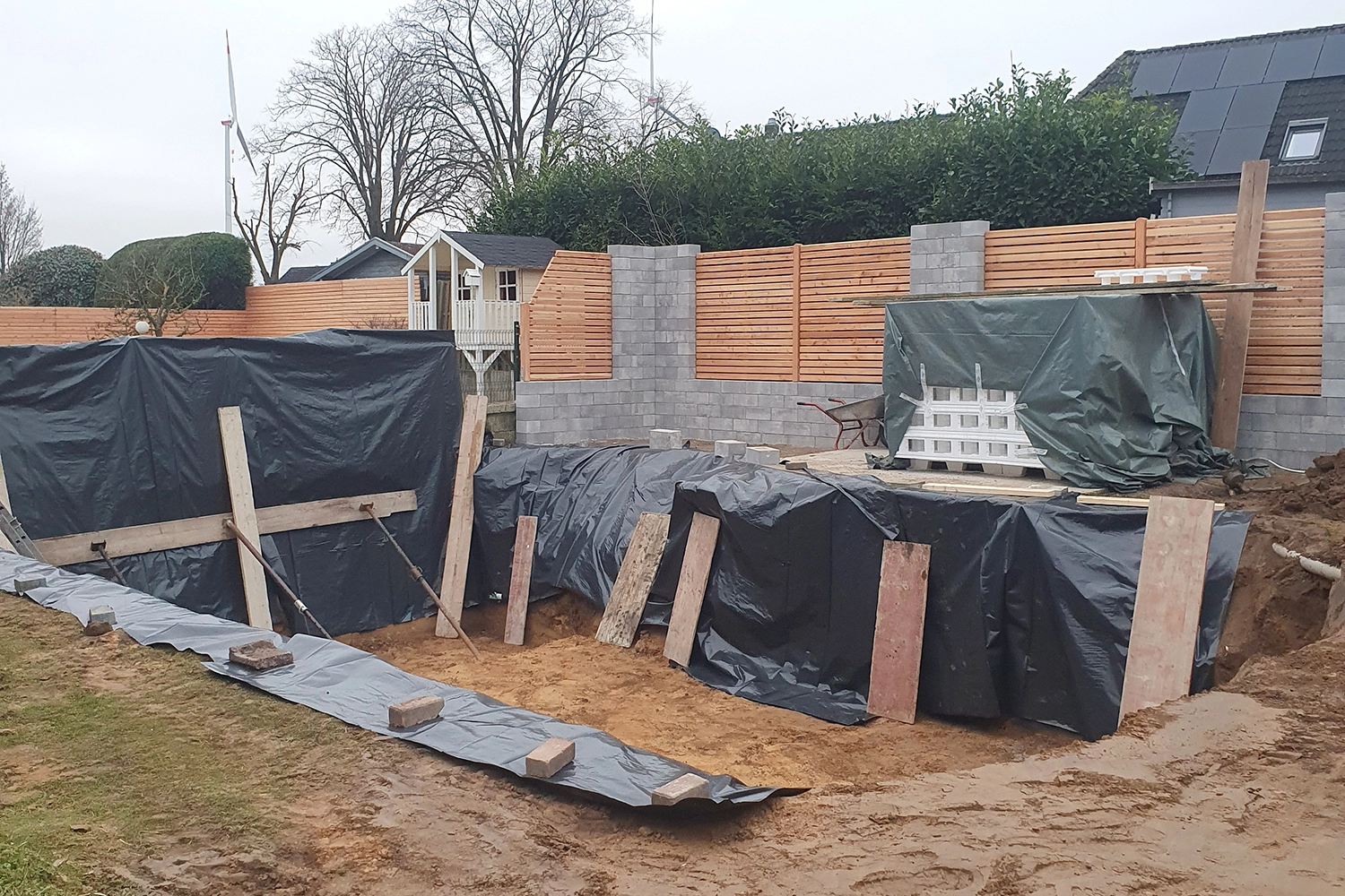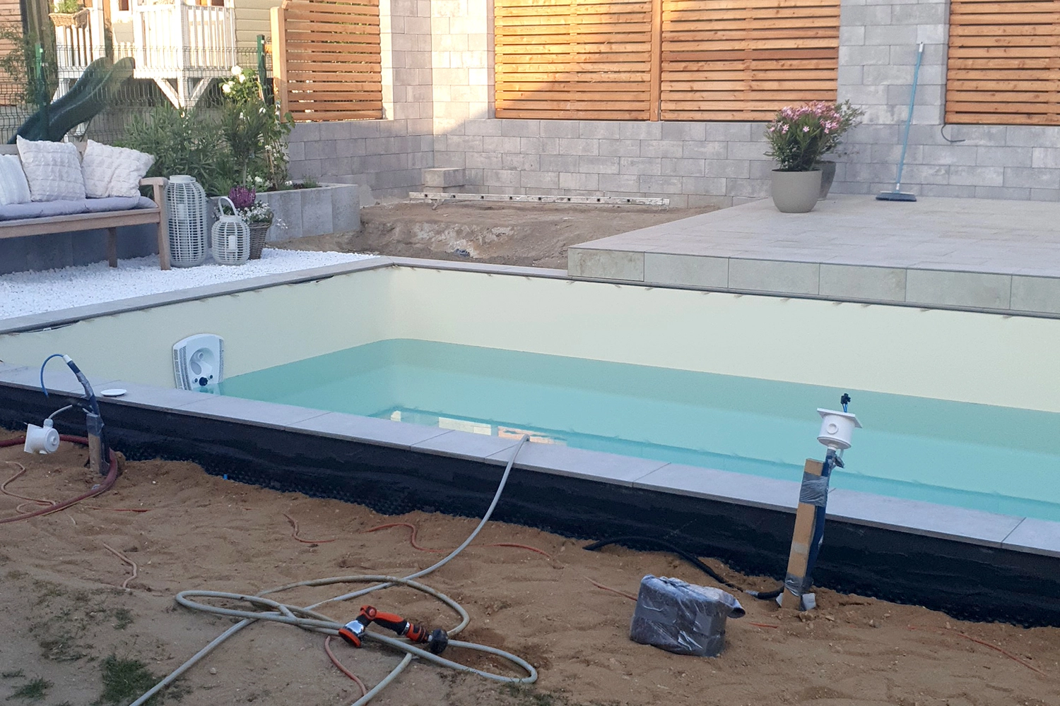La pose du liner a été plus facile que prévu, notamment grâce à l’aide de nos voisins expérimentés