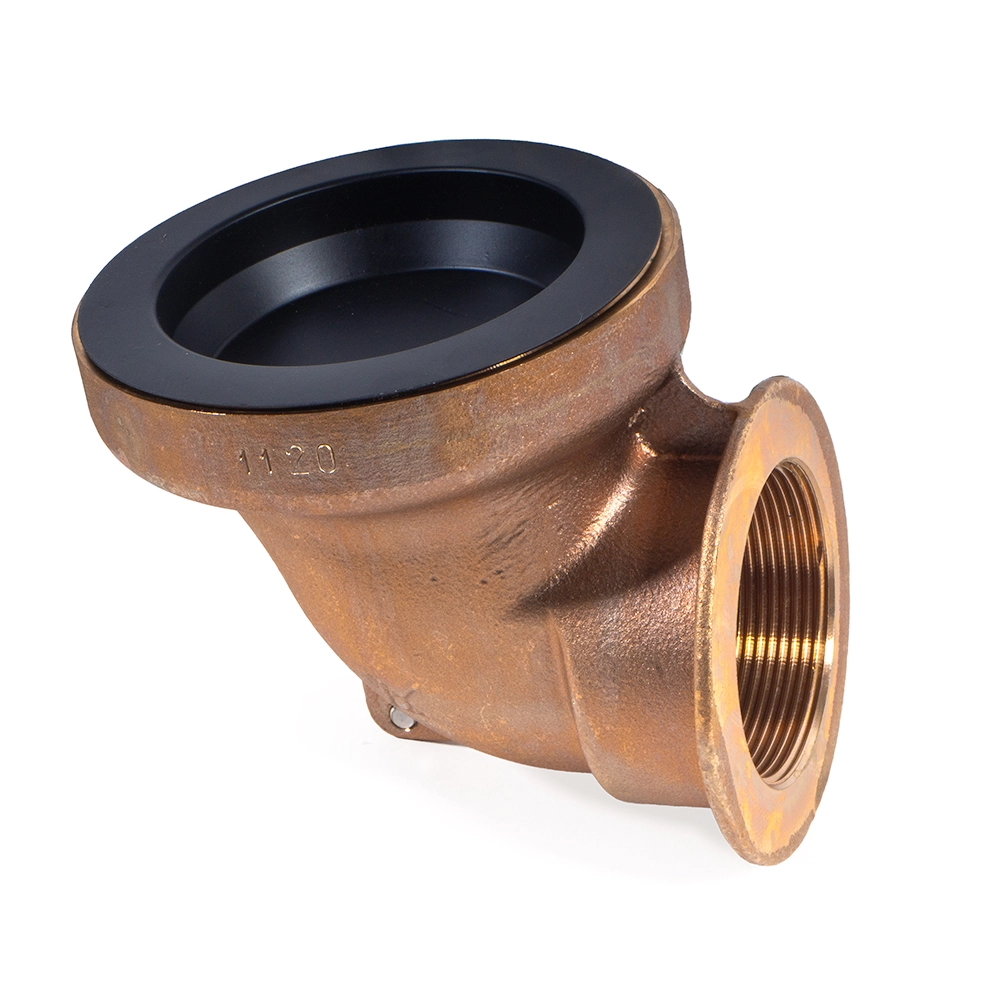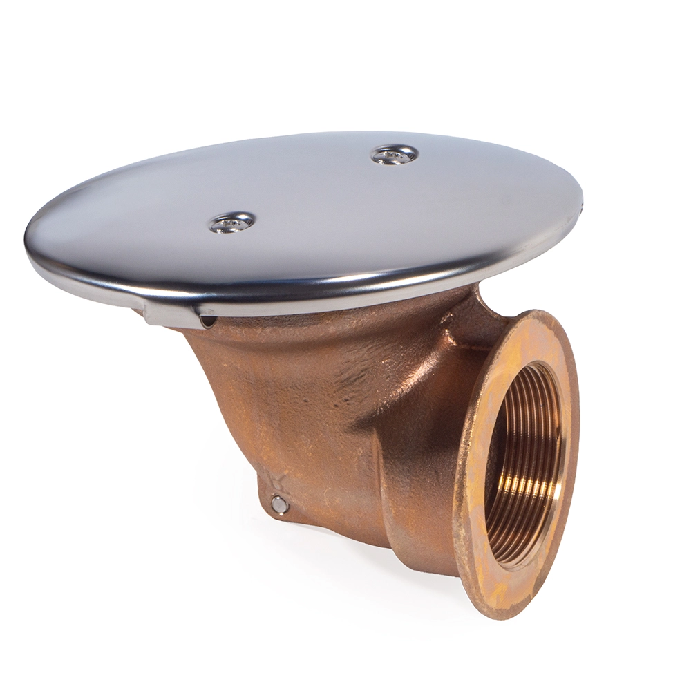 Bonde de fond original Hugo Lahme, diamètre 168 mm, partie supérieure en acier inoxydable V4A, partie inférieure en bronze rouge Gbz10 avec couvercle anti-vortex. Résistant au sel.