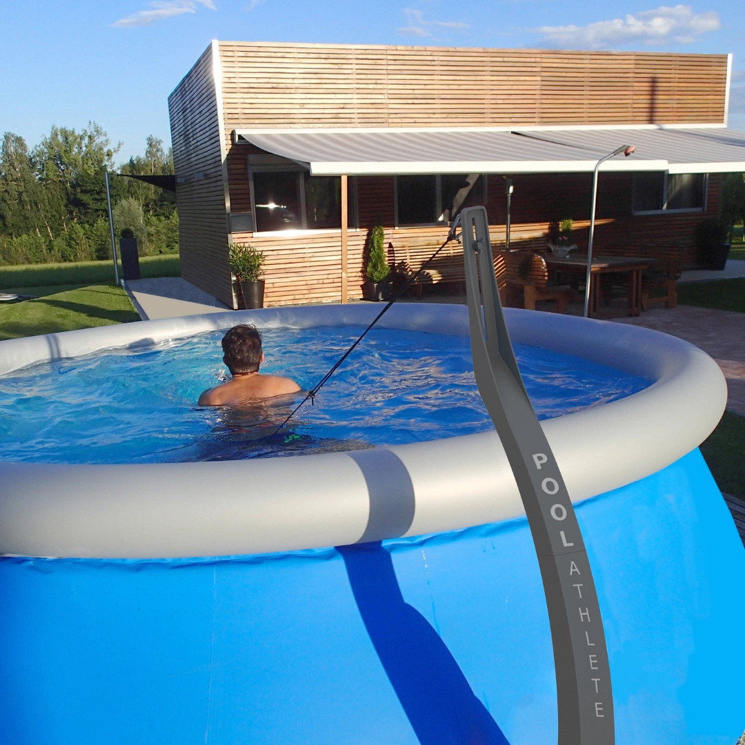 Le Pool Athlete est le système d'entraînement à la natation le plus innovant pour la piscine et une excellente alternative à un système de nage à contre-courant. Le système Pool Athlete se compose d'un arceau en plastique à ressort, d'une corde et d'une ceinture. Ce concept simple permet de nager dans la piscine même dans les petites piscines - à partir de 4 m de longueur ou de diamètre.