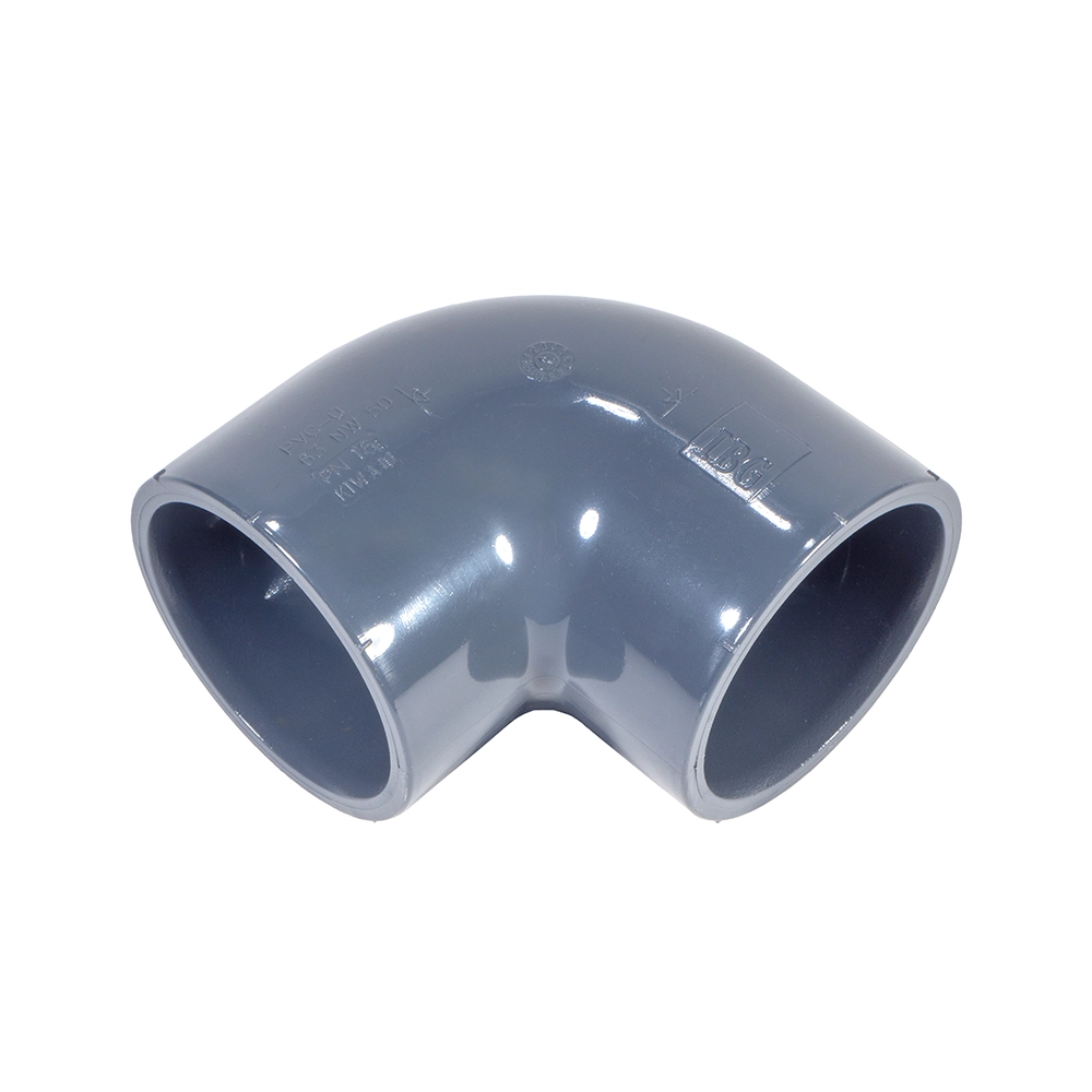 Raccord adhésif en PVC, coude de 90 degrés, intérieur – intérieur, 63 mm.